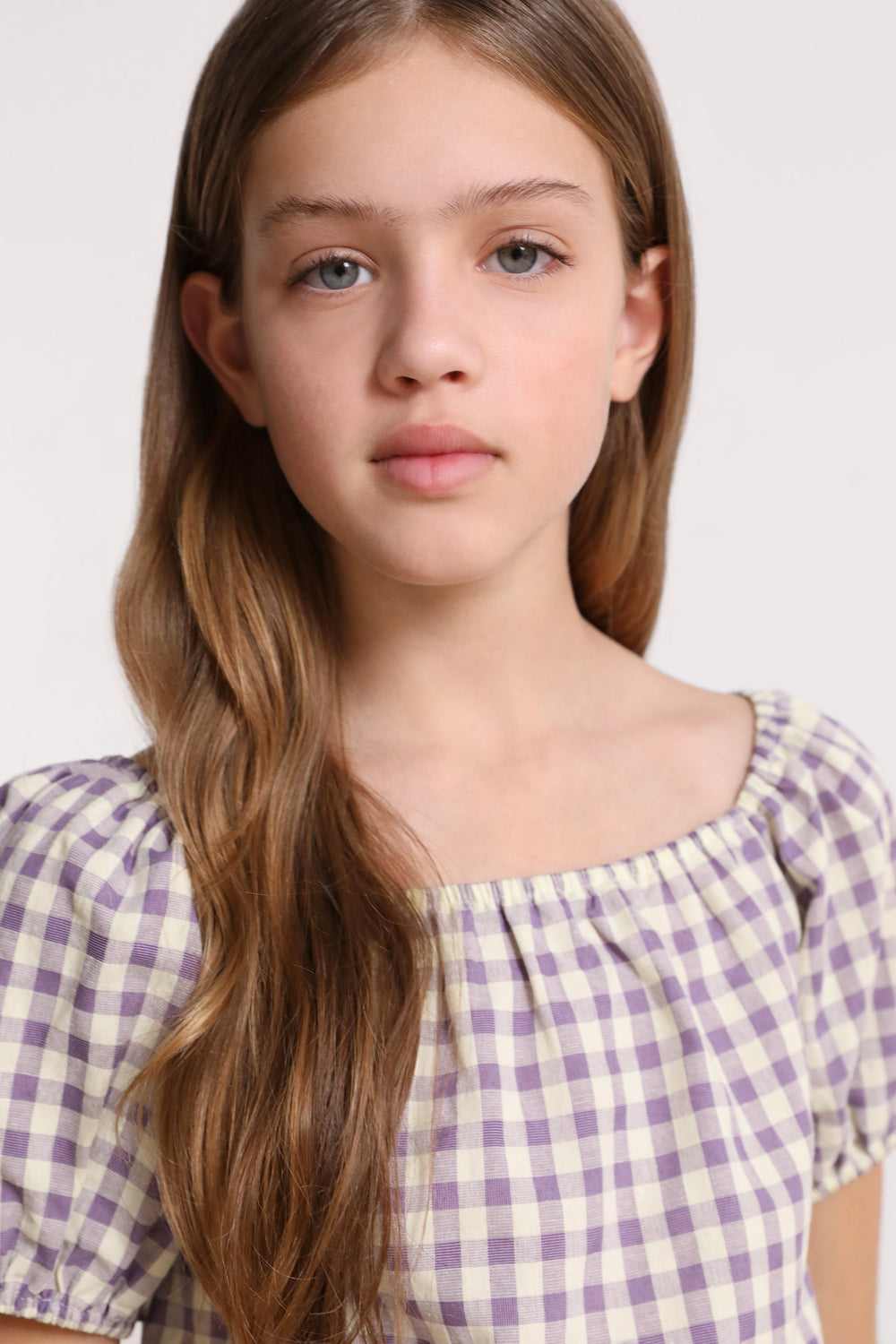 Blouse with gingham print.