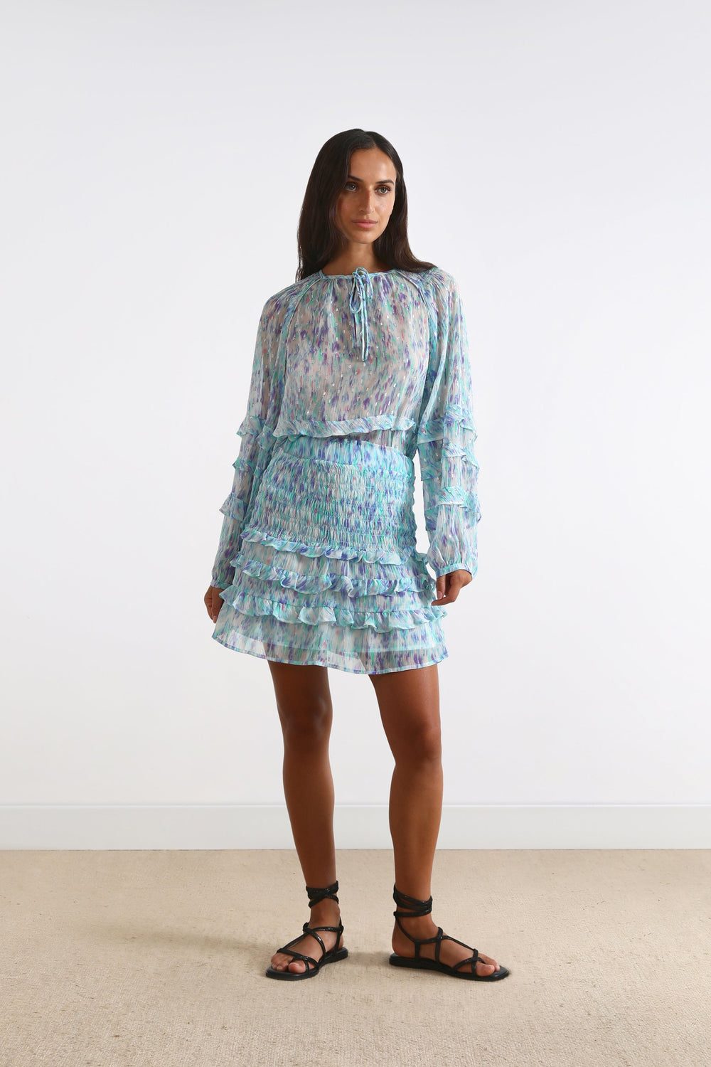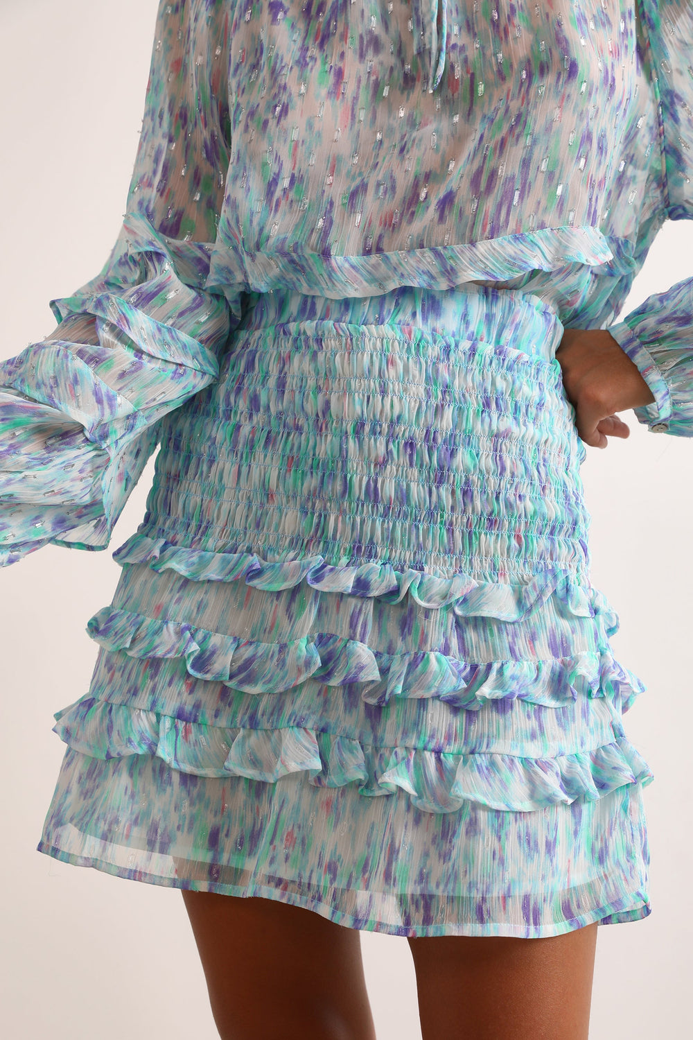 - Ruffle detail on the hem