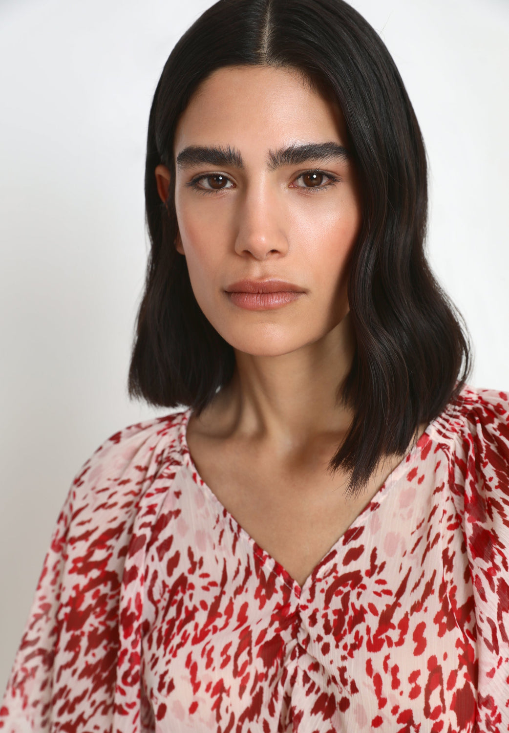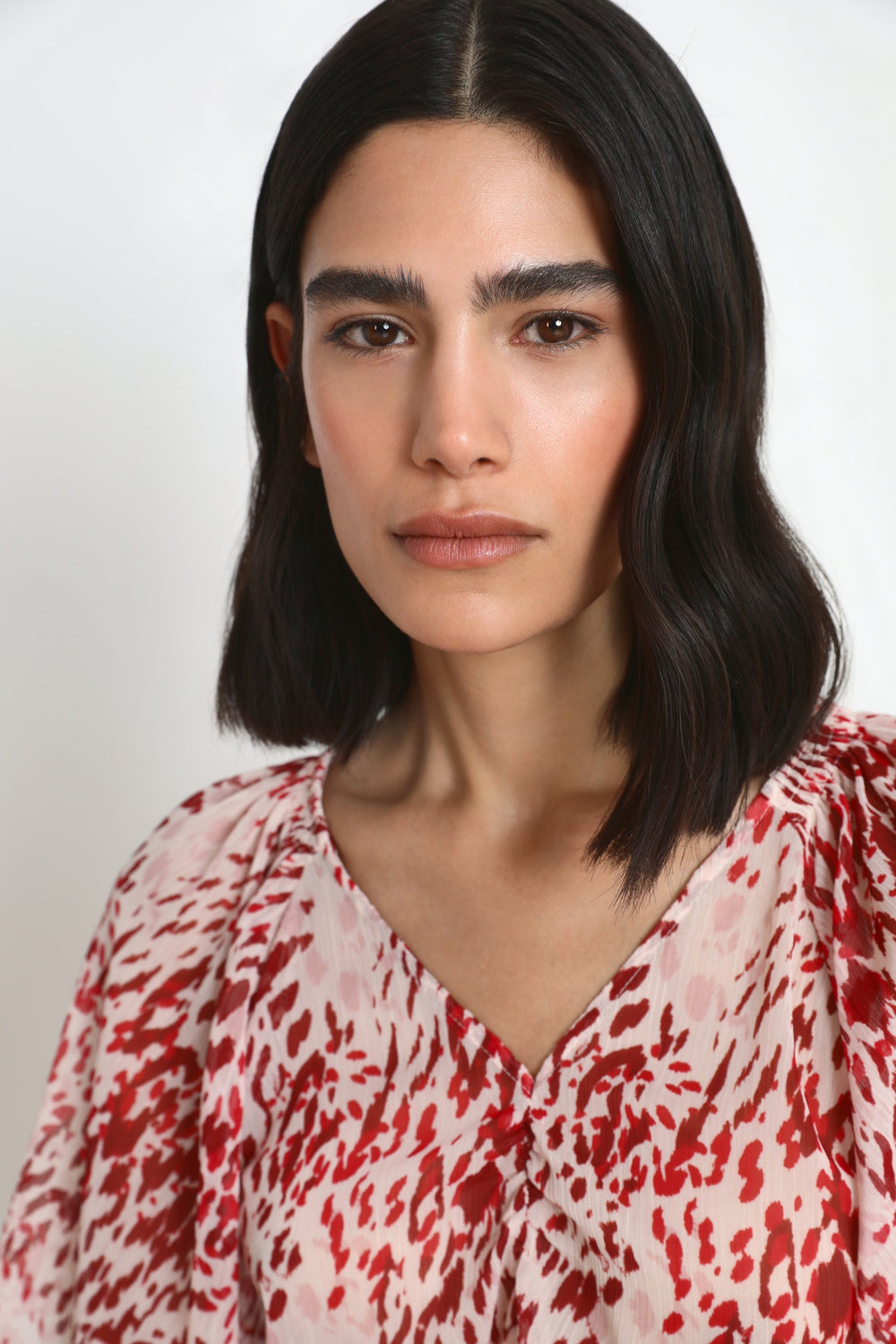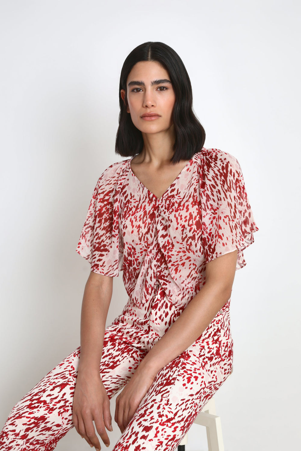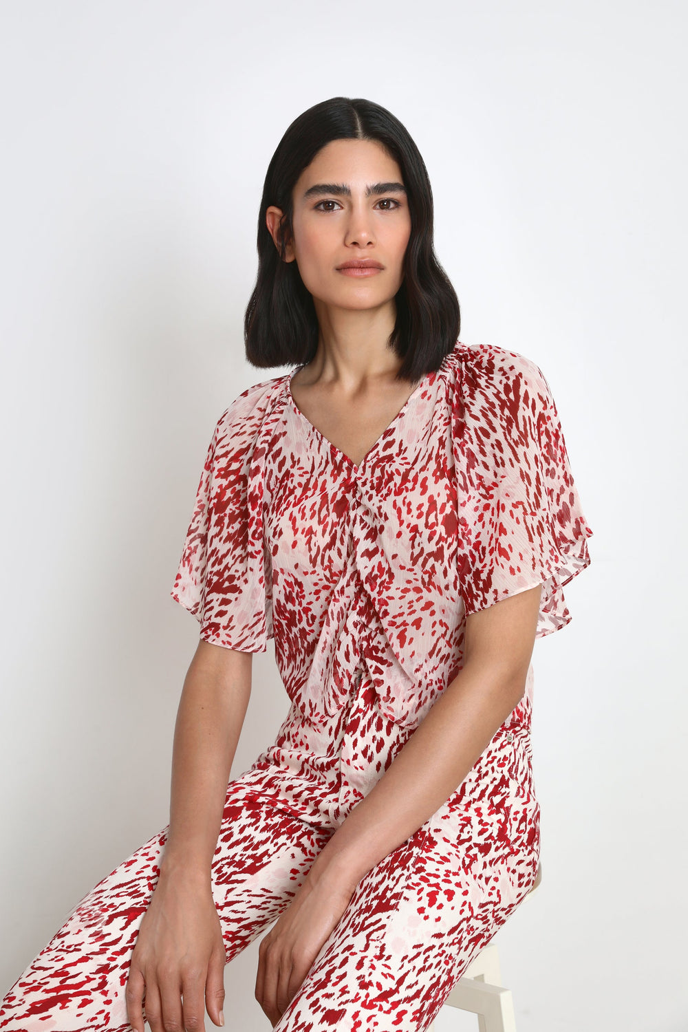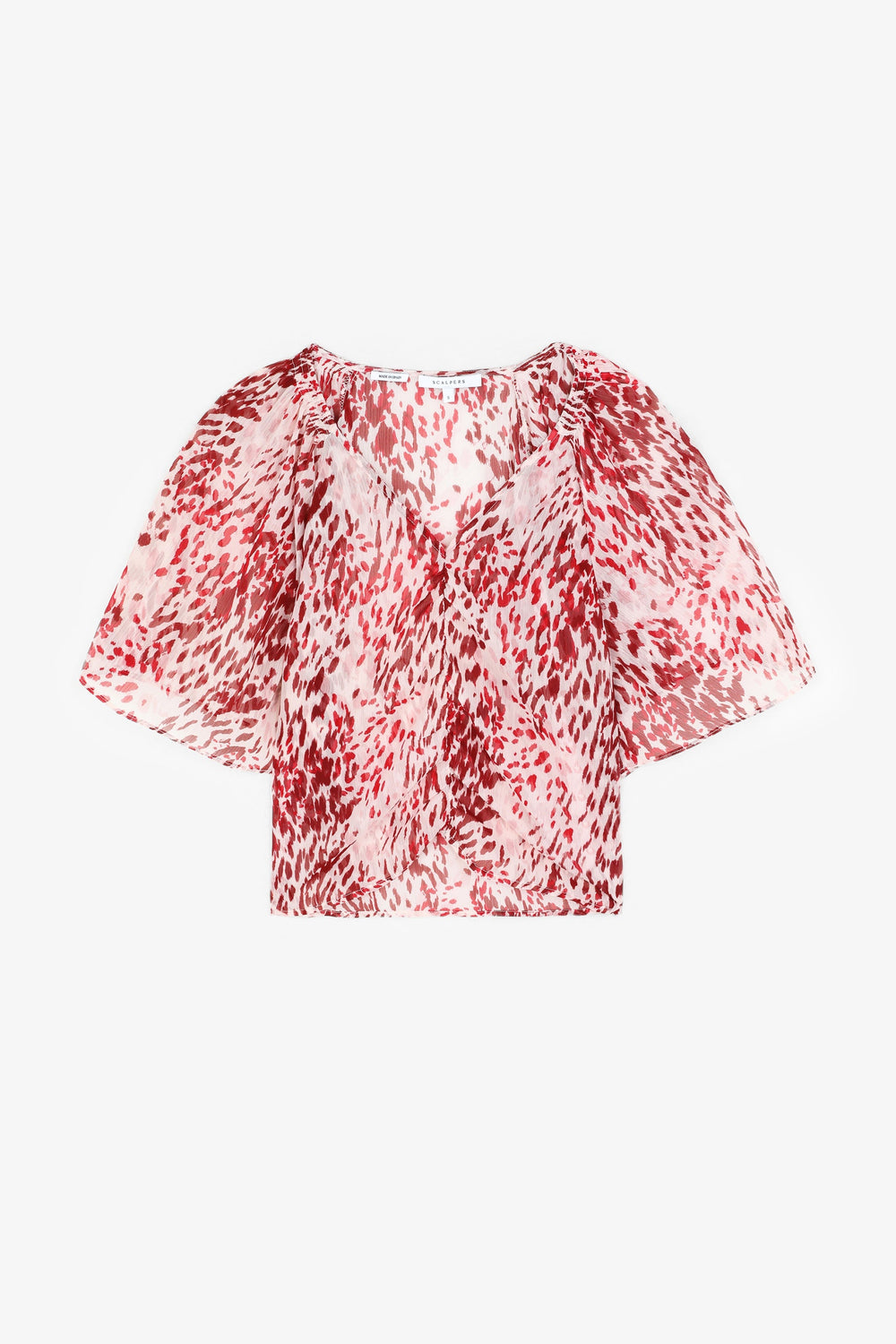 Blouse with front gathering and flowing sleeves.