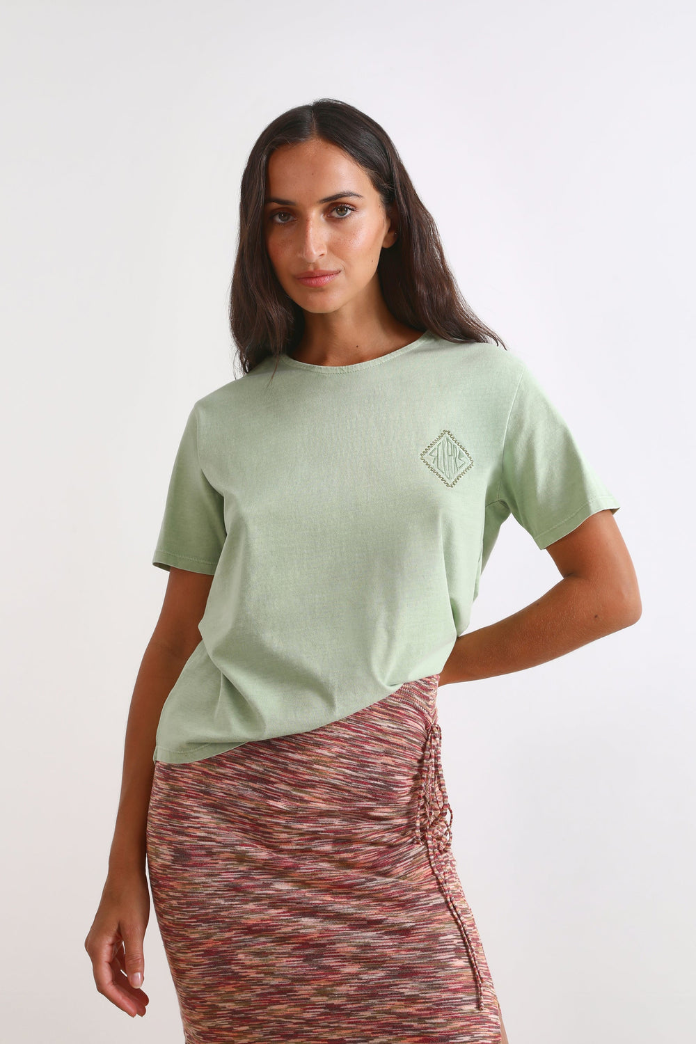 T-shirt with embroidered detail on the chest.