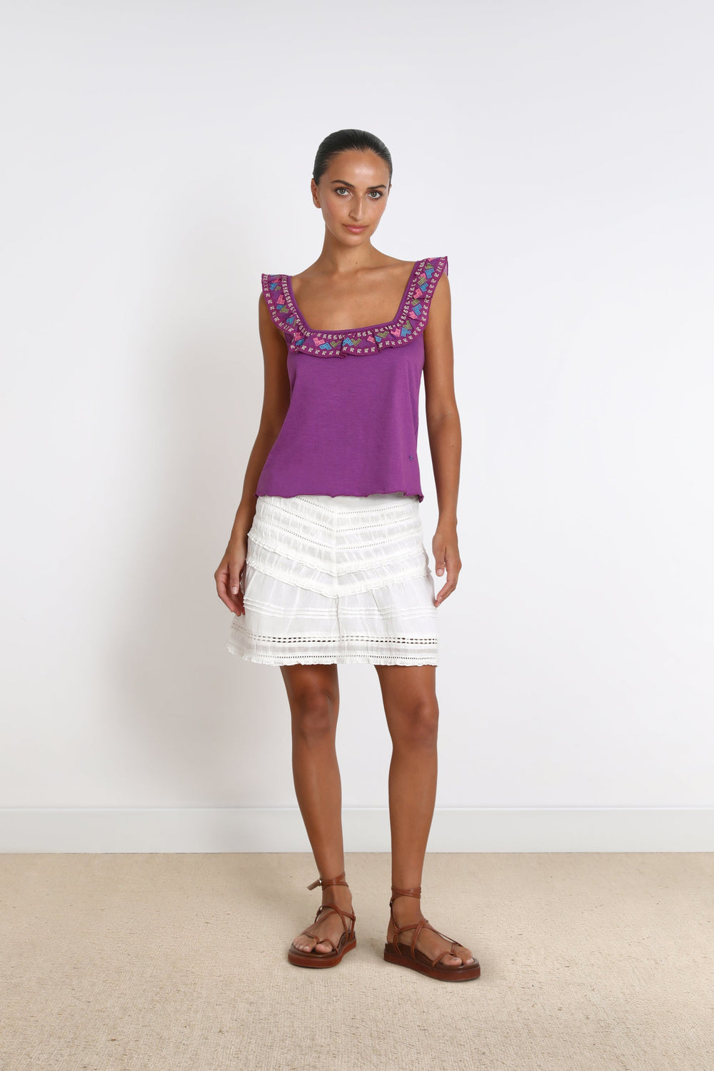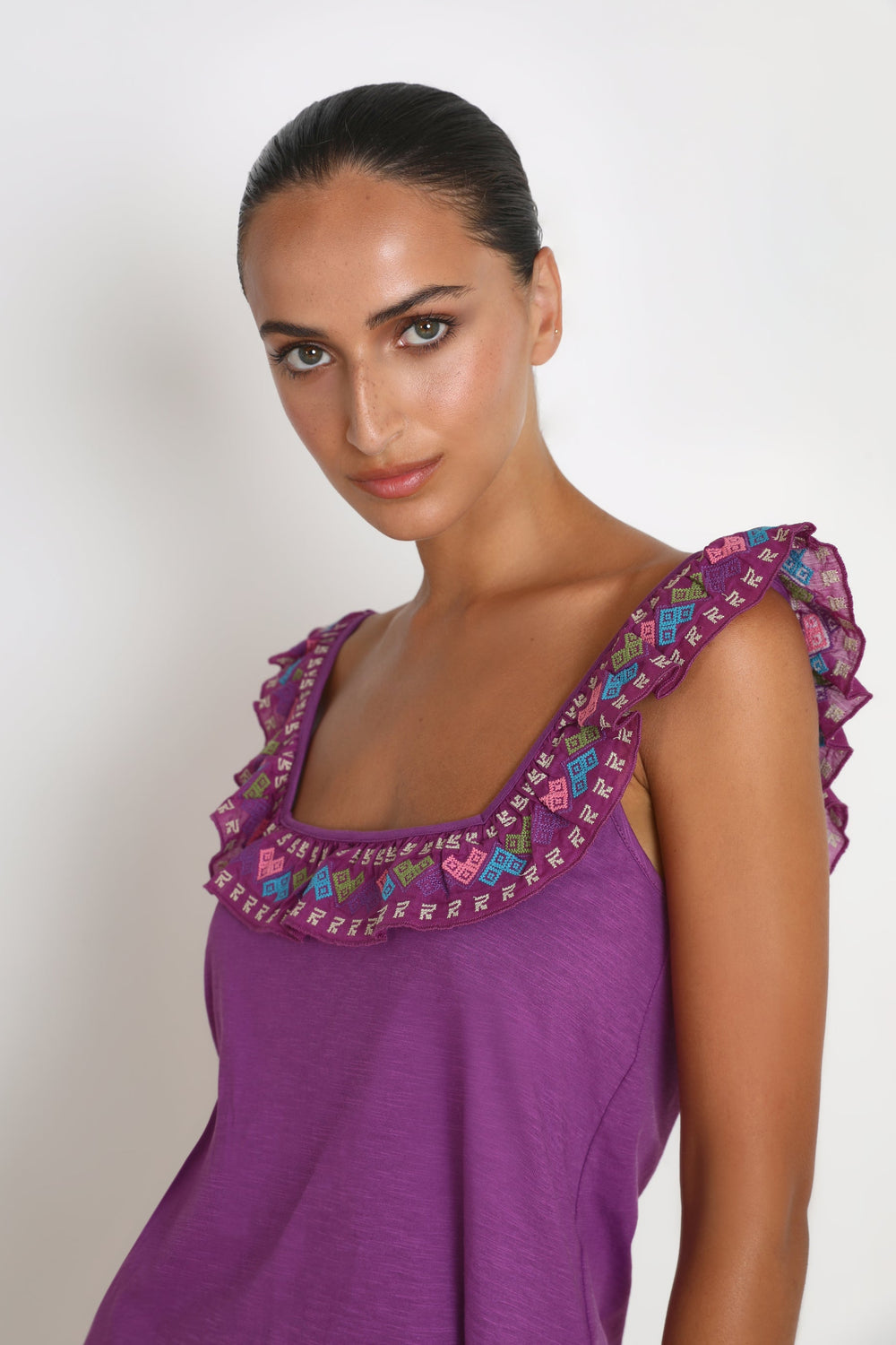 Top with embroidered details.