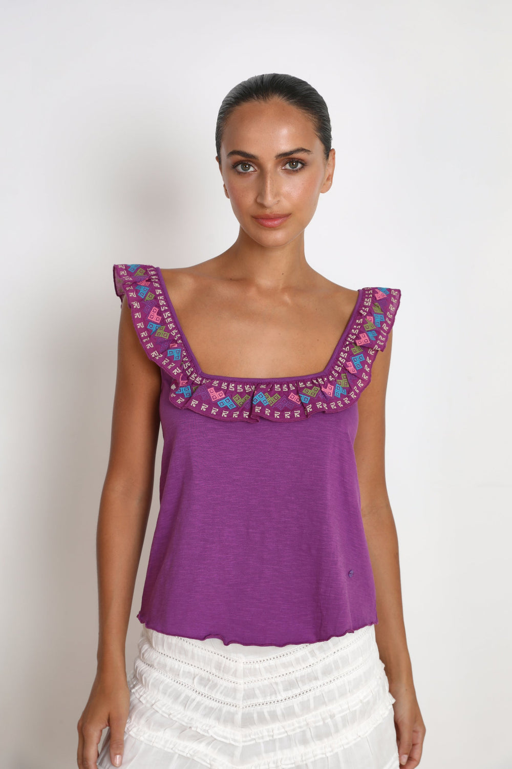 RUFFLED TOP WITH EMBROIDERY