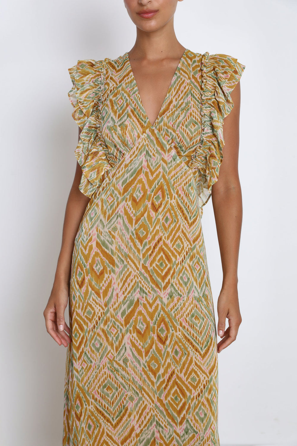 MIDI DRESS WITH RUFFLED SLEEVES