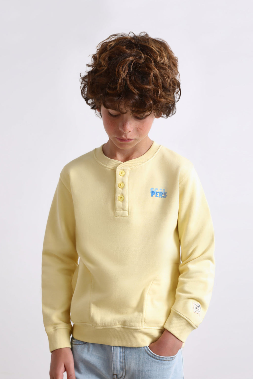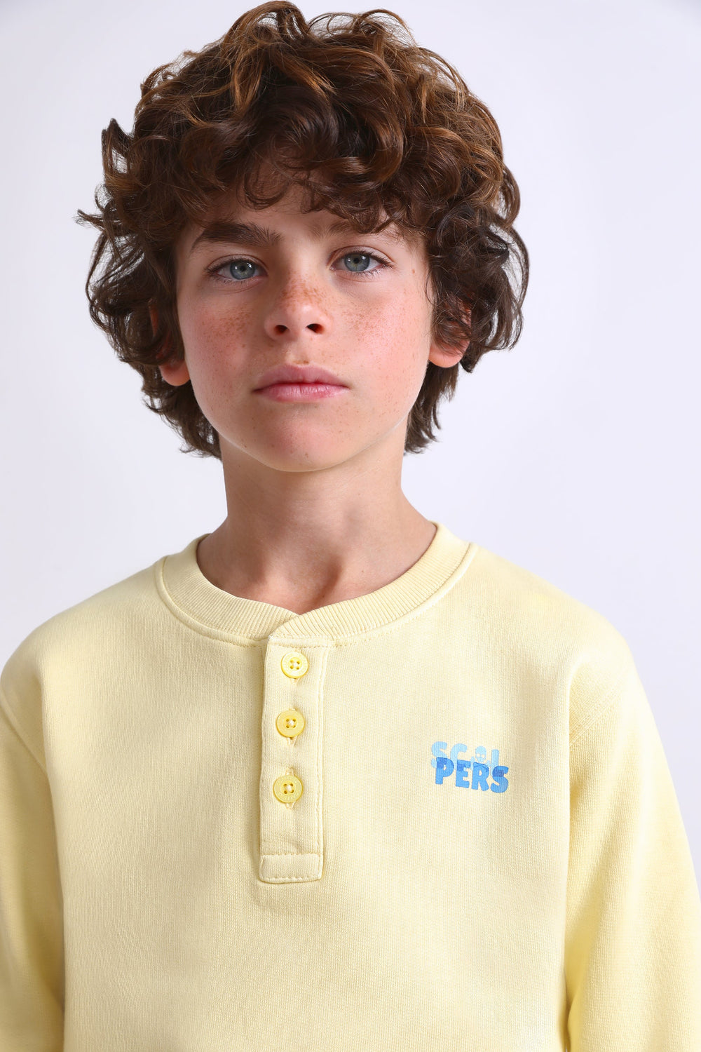 • Round neck with buttons