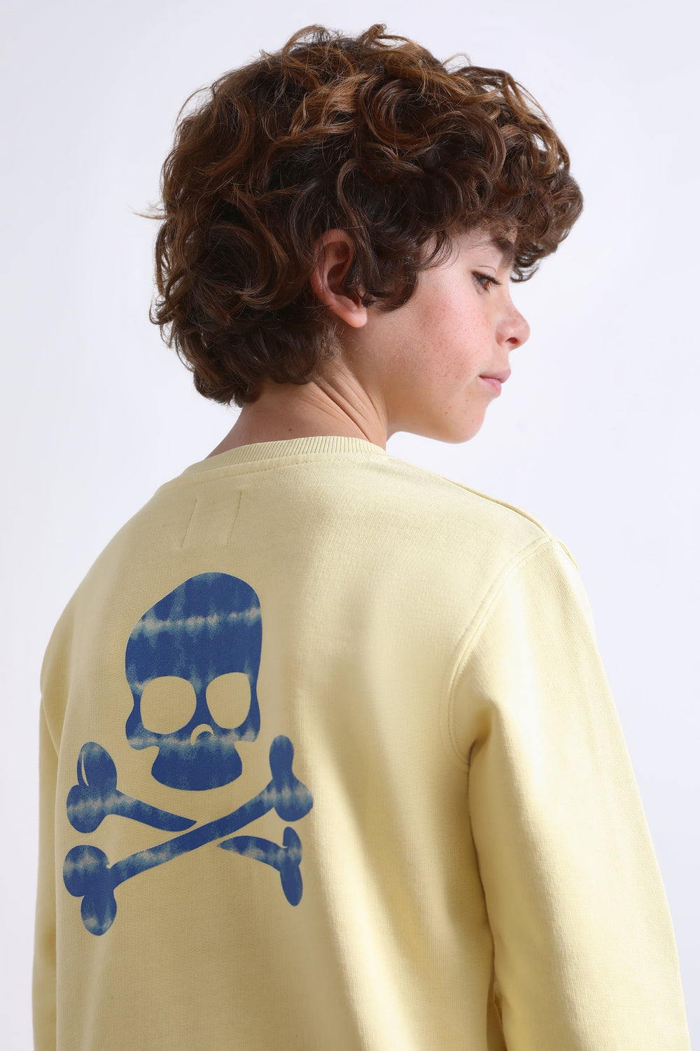 Sweatshirt with skull on the back and logo on the chest.