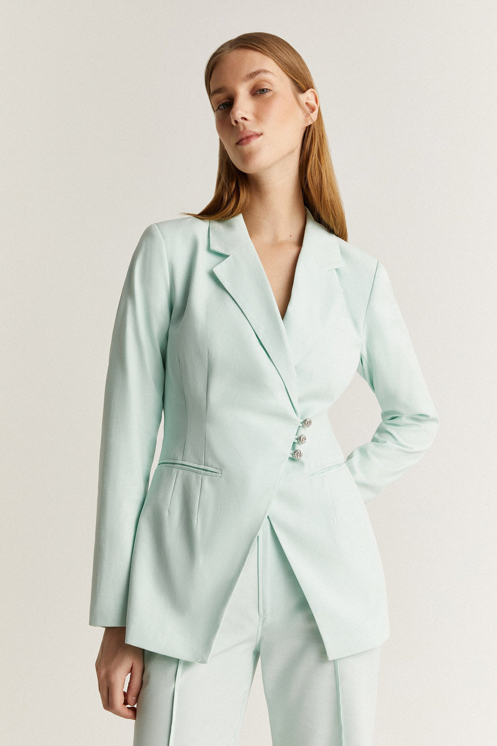 • Double-breasted button fastening