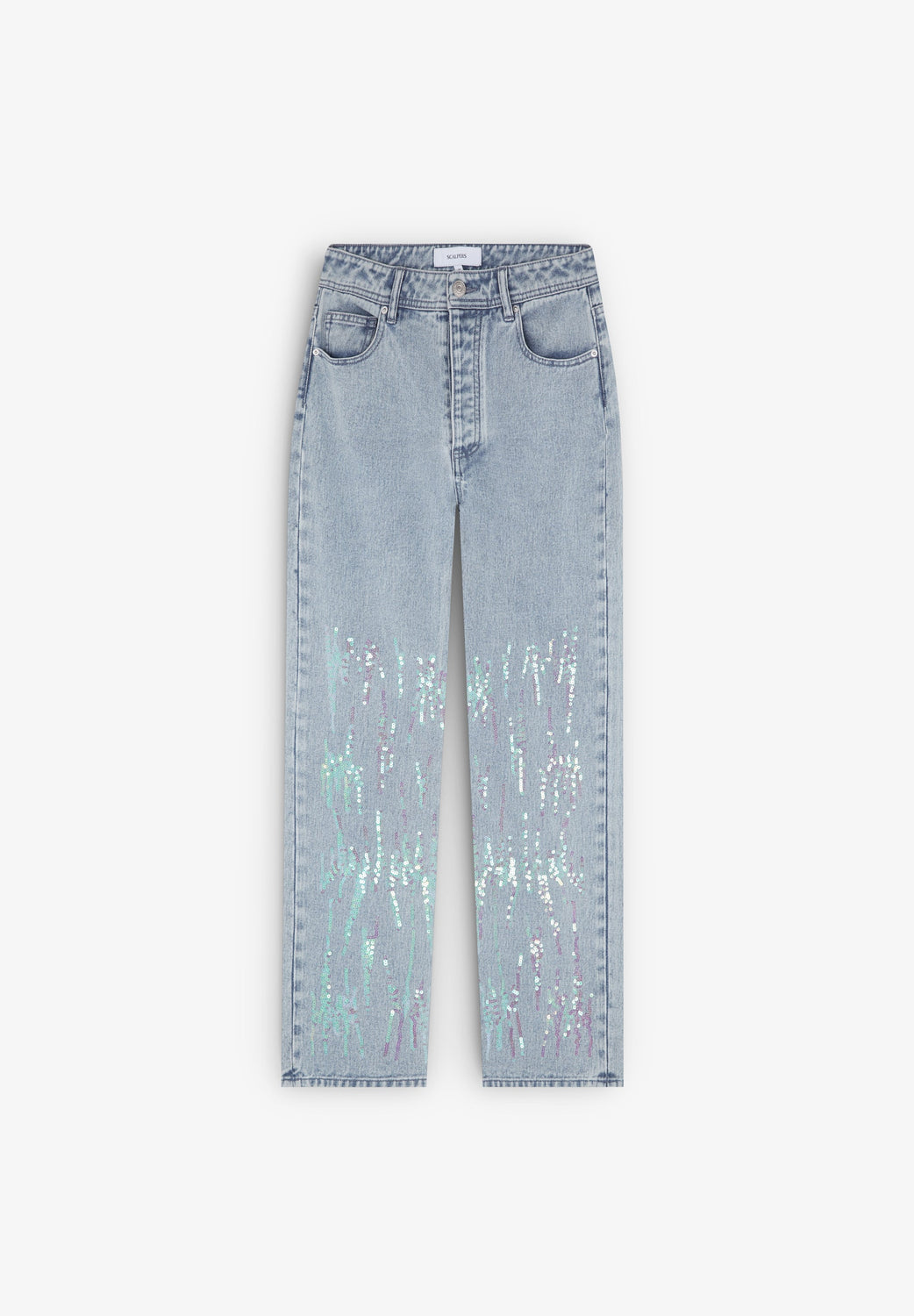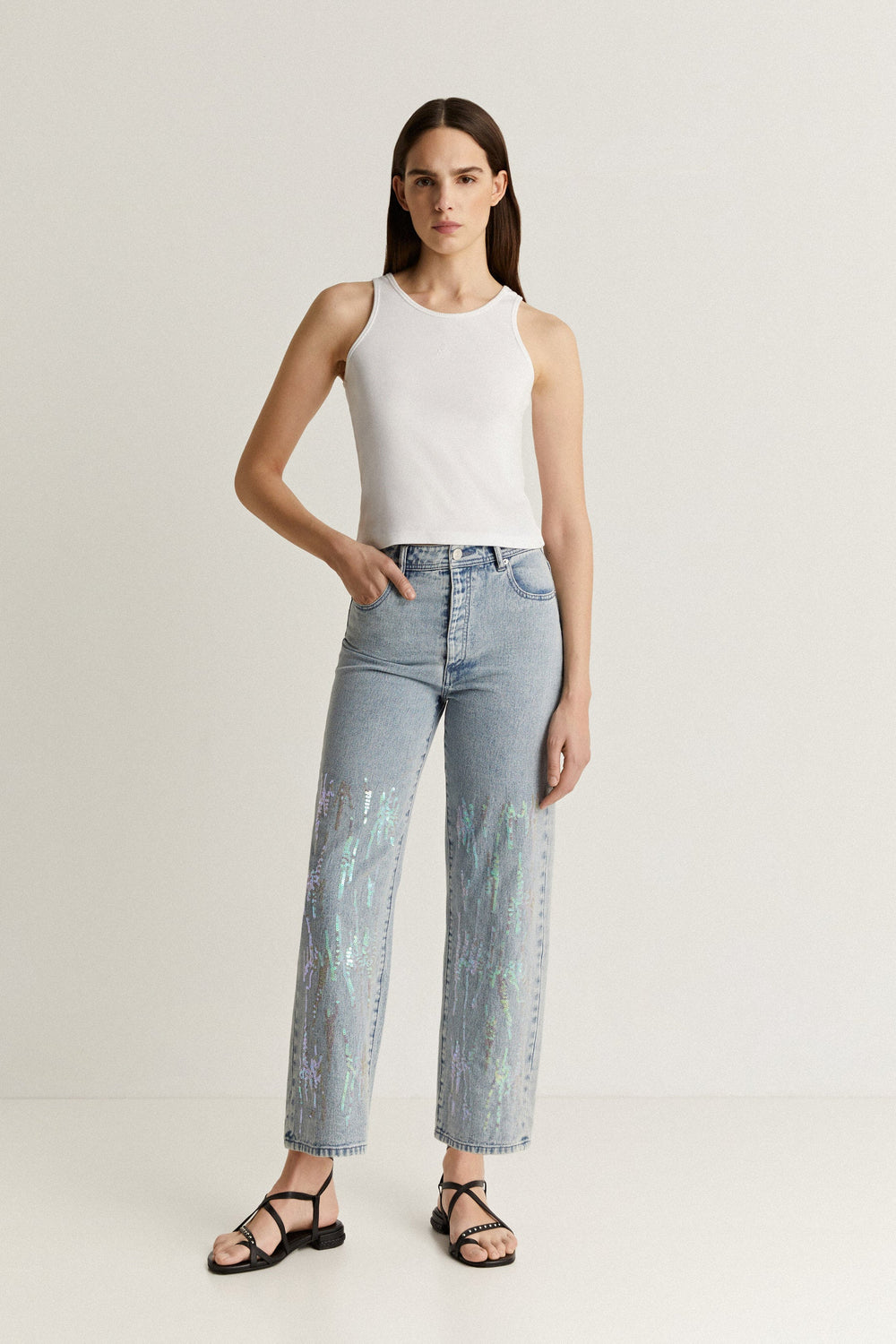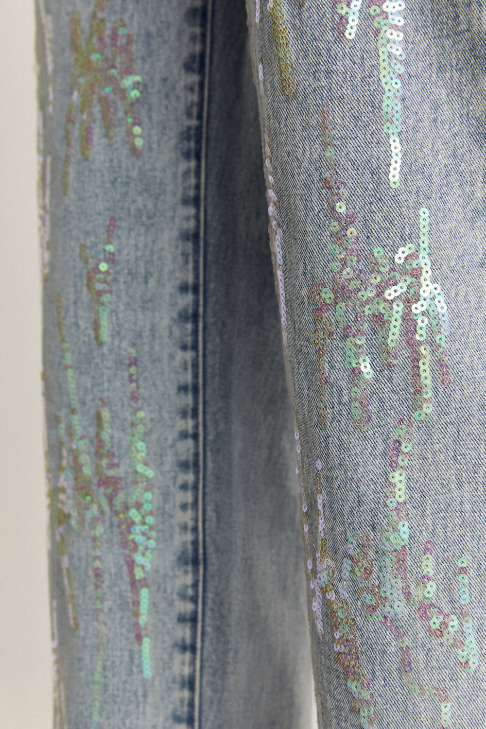 Jeans with sequin detail on the hem.