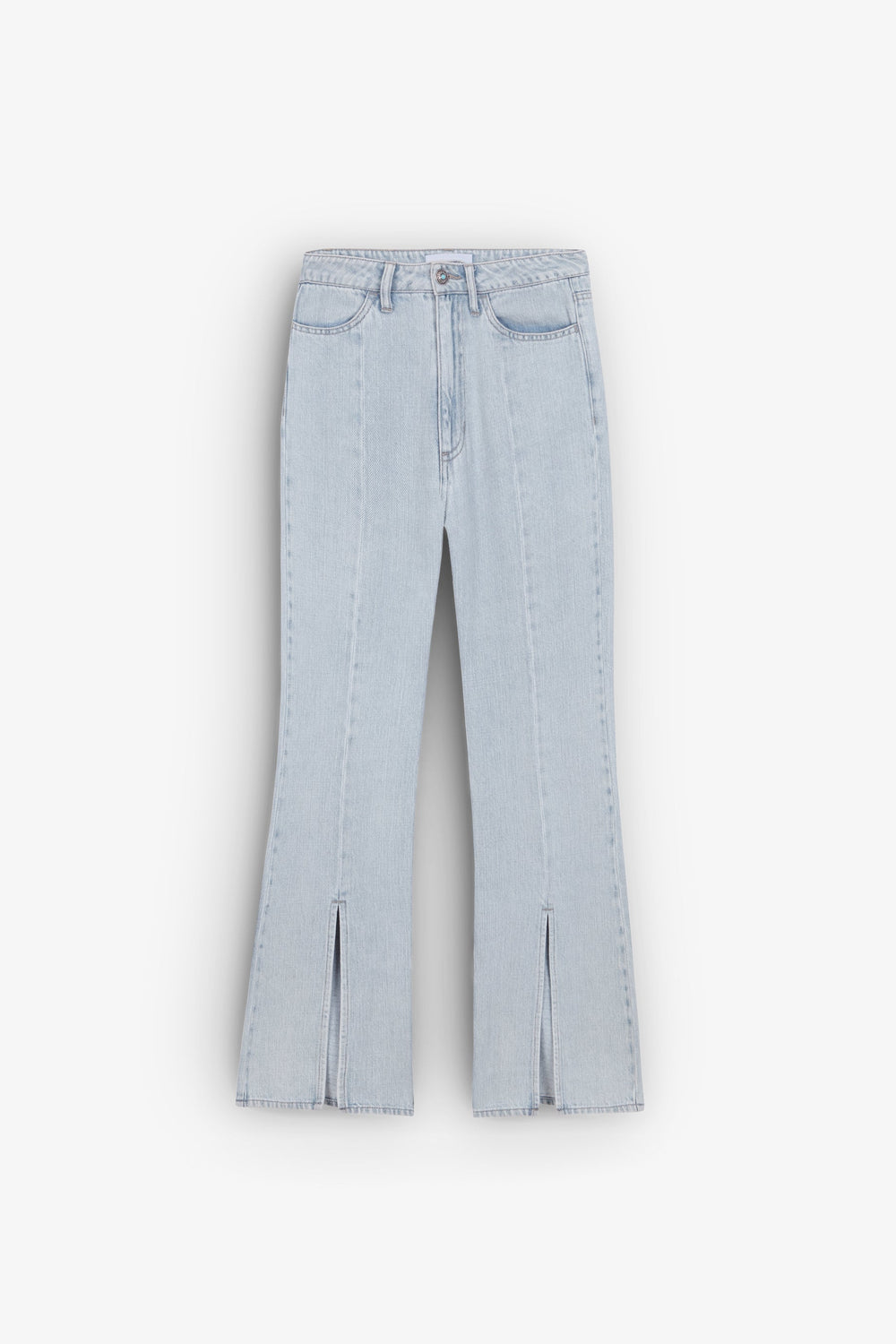 Jeans with front slit detail.