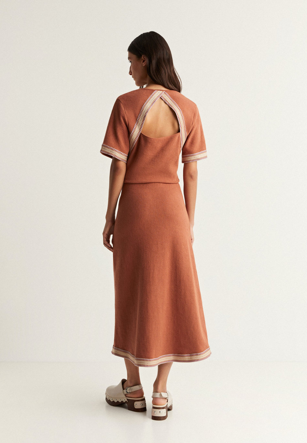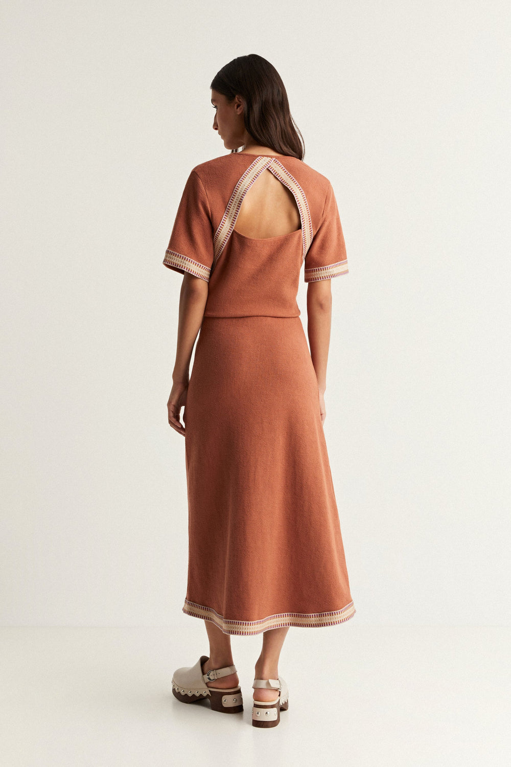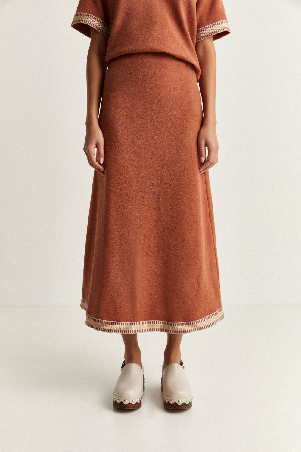 Midi skirt in sweater fabric with contrasting strip detail on the hem.