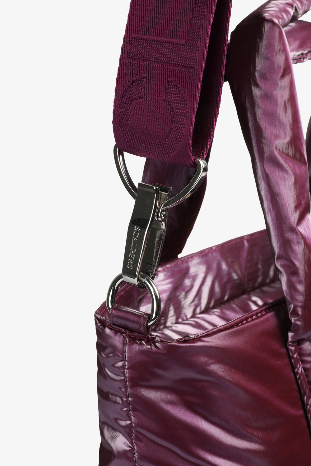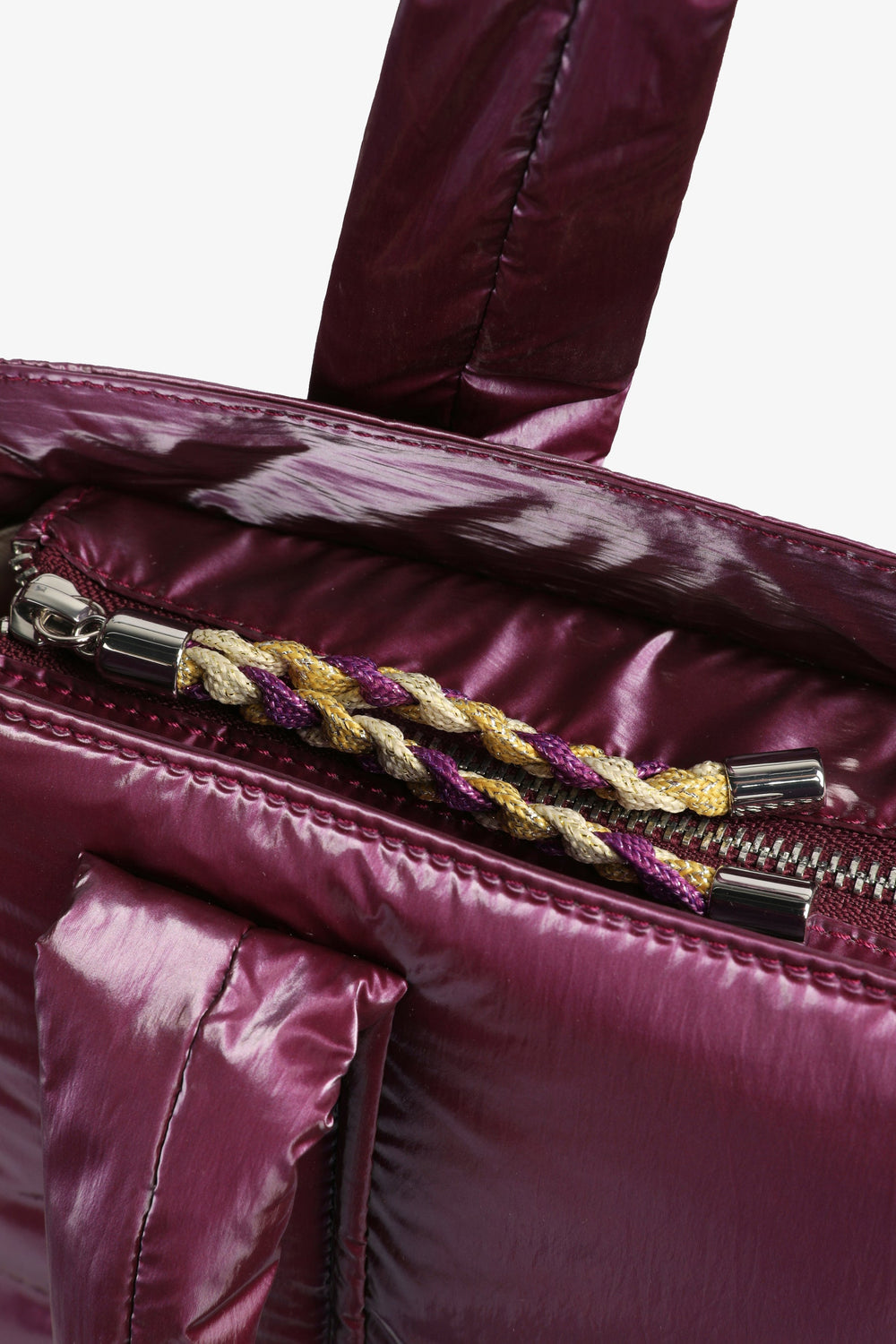 Metallic padded mini tote bag.