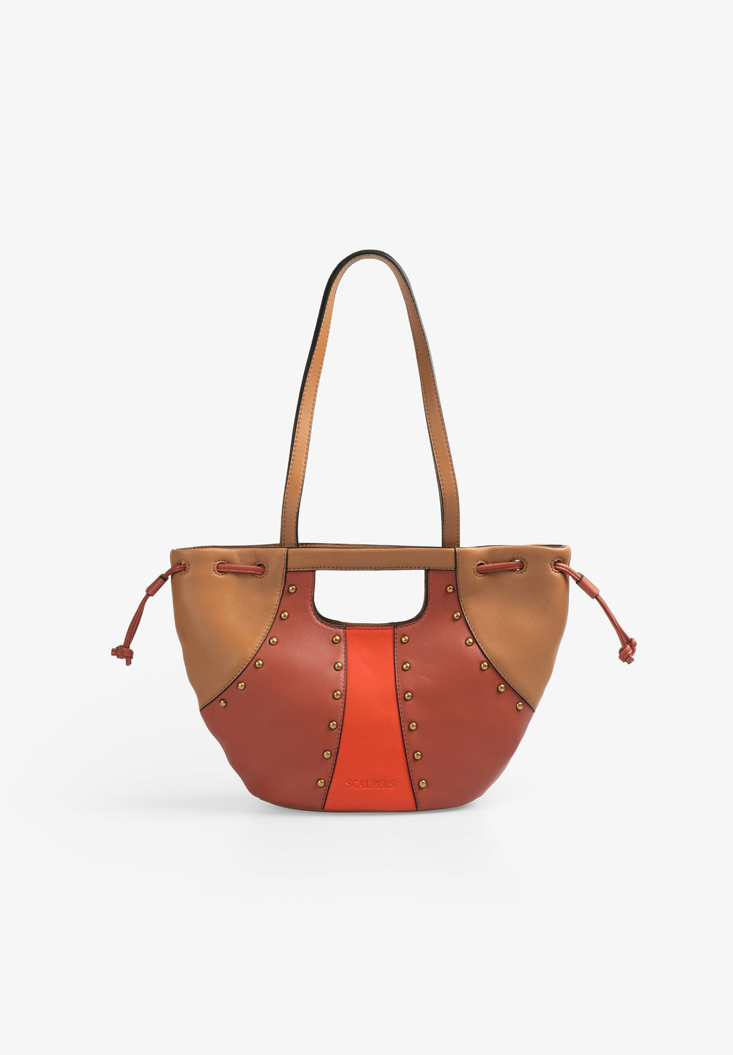 Three-coloured shoulder bag with stud details.