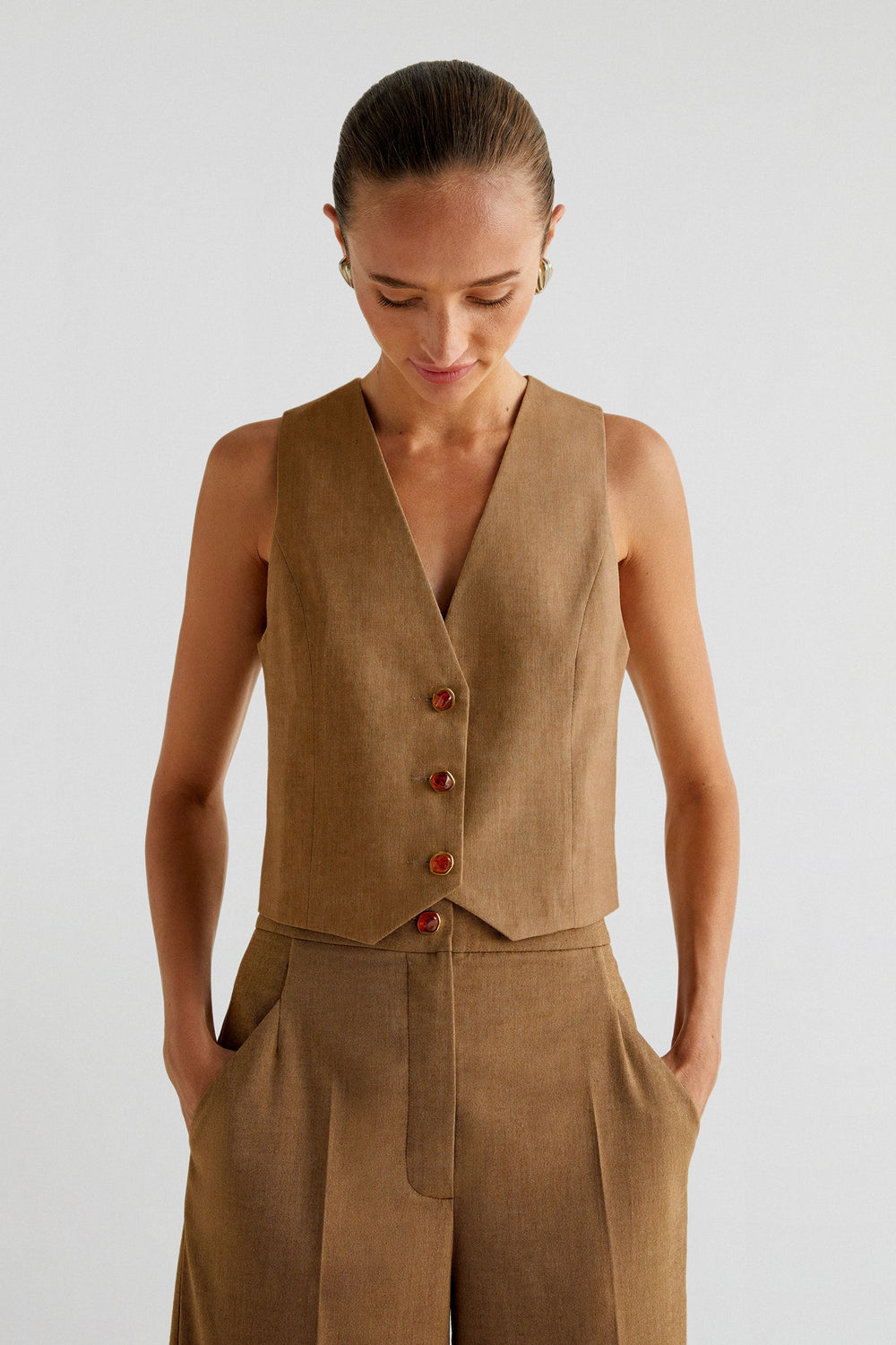 CROPPED WAISTCOAT WITH GEM BUTTONS