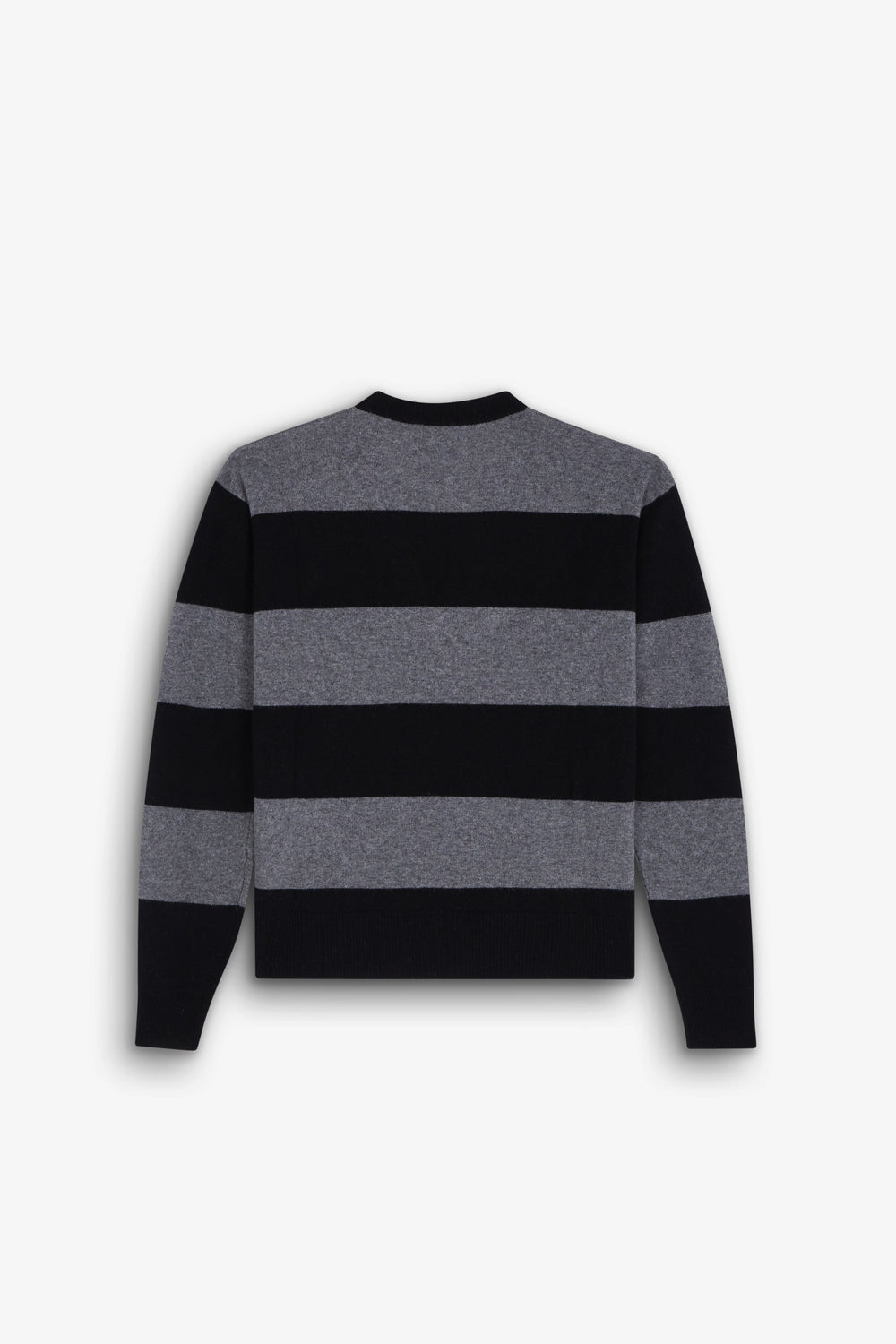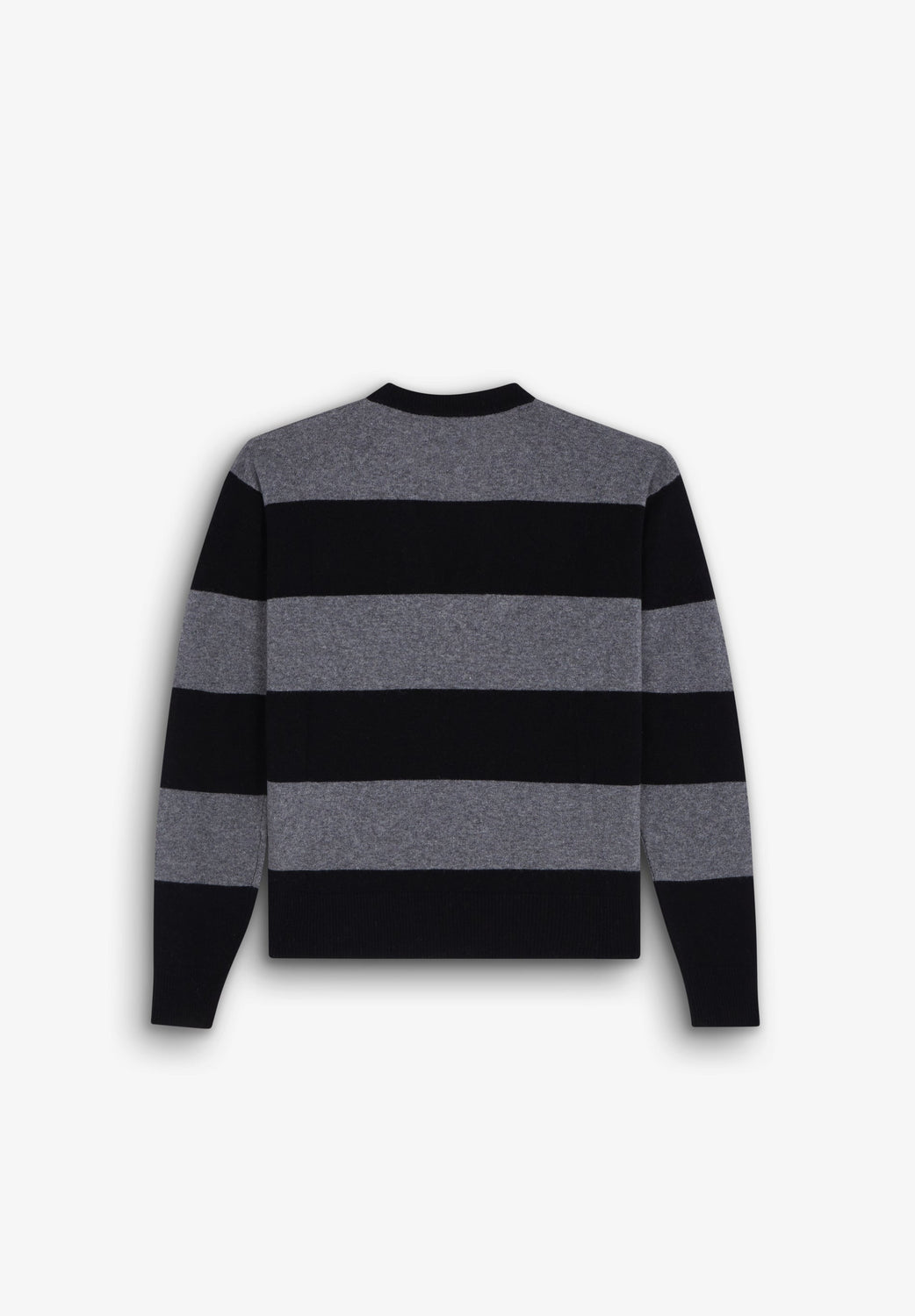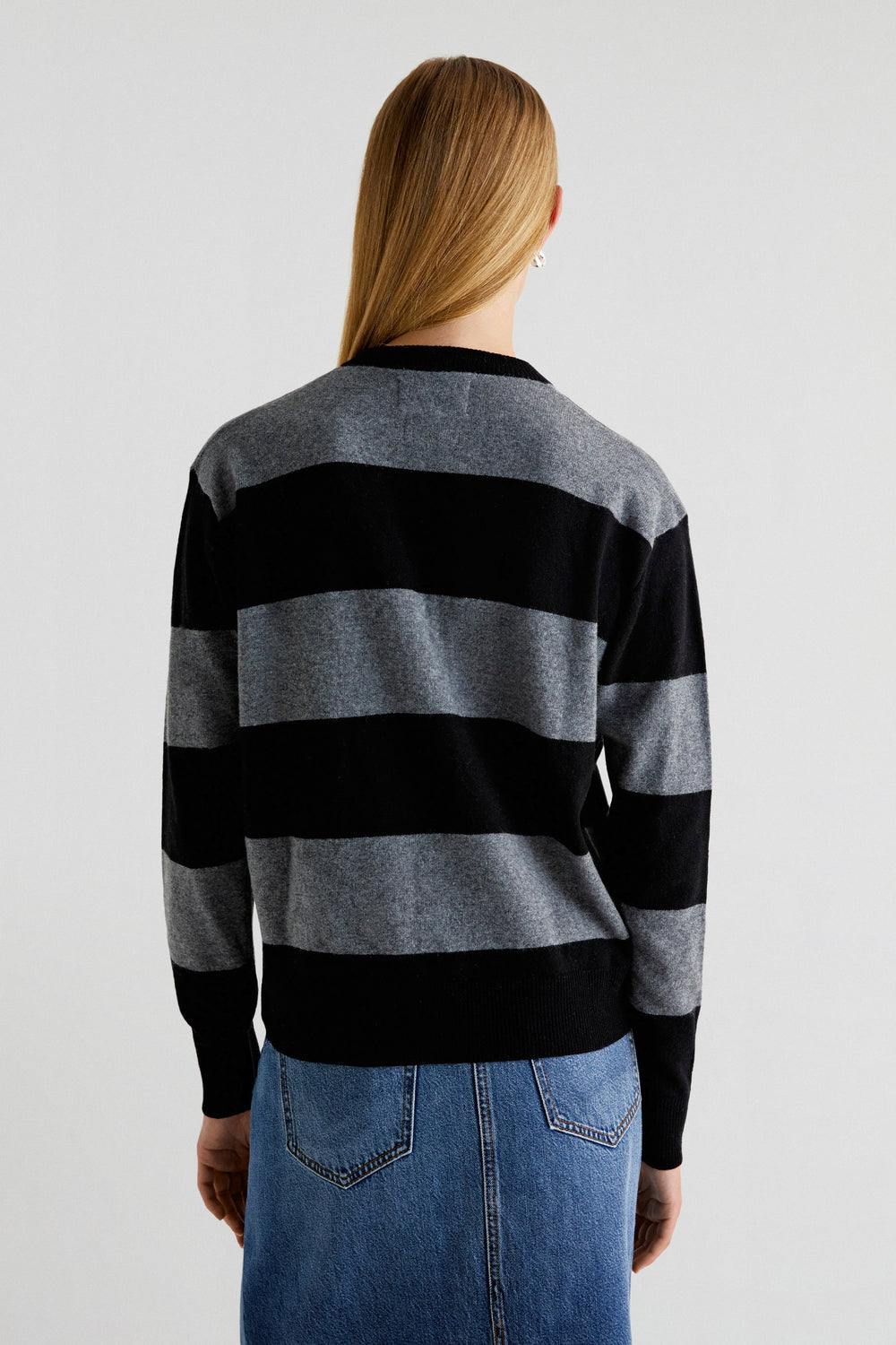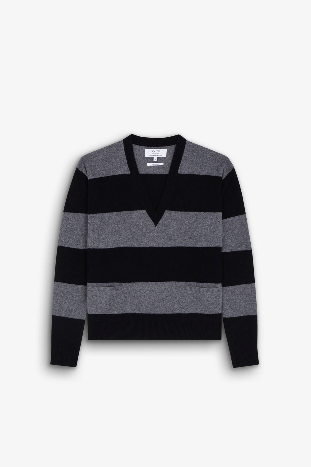 STRIPED SWEATER WITH POCKETS AND V-NECK