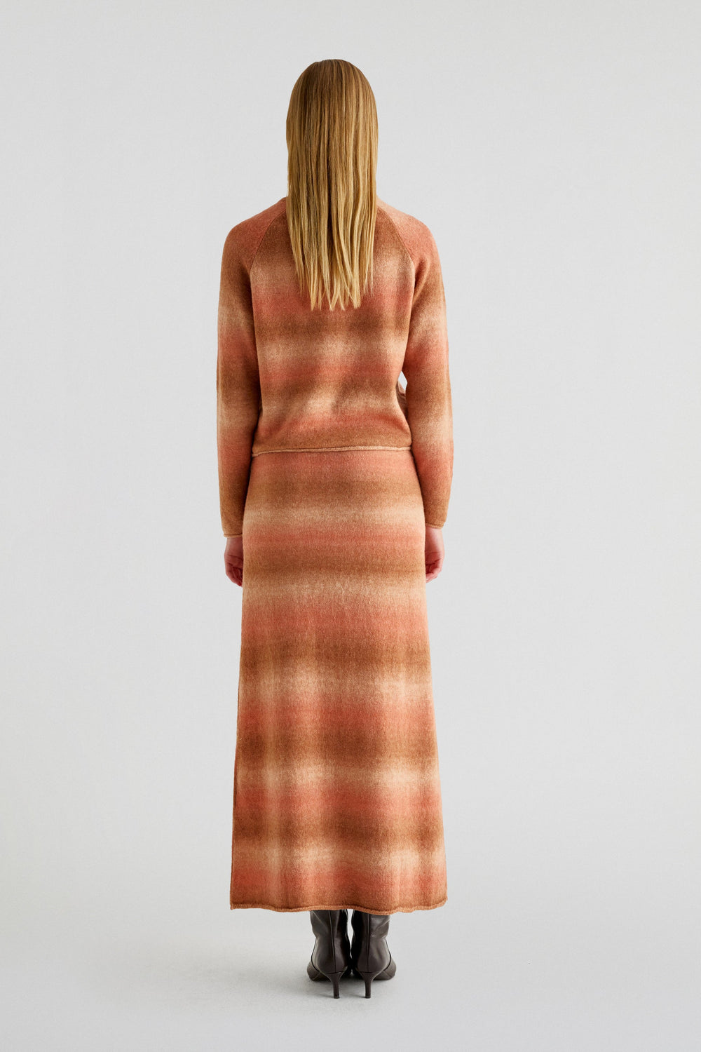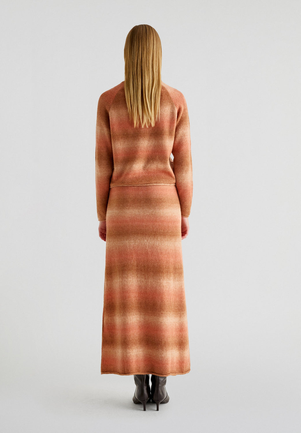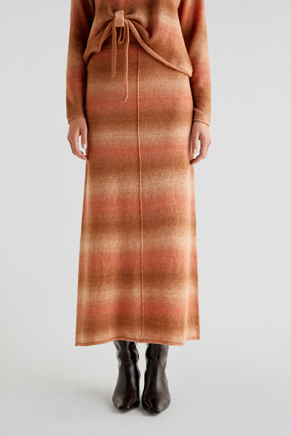 Tie-dye knit midi skirt. Regular fit with an elasticated waist and side slit.