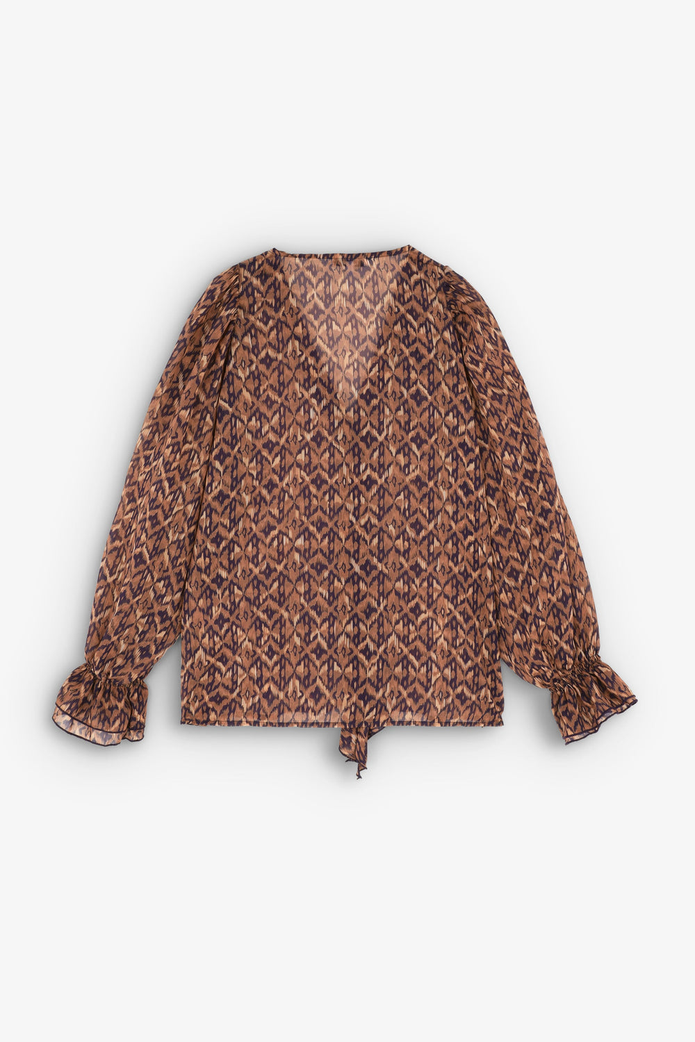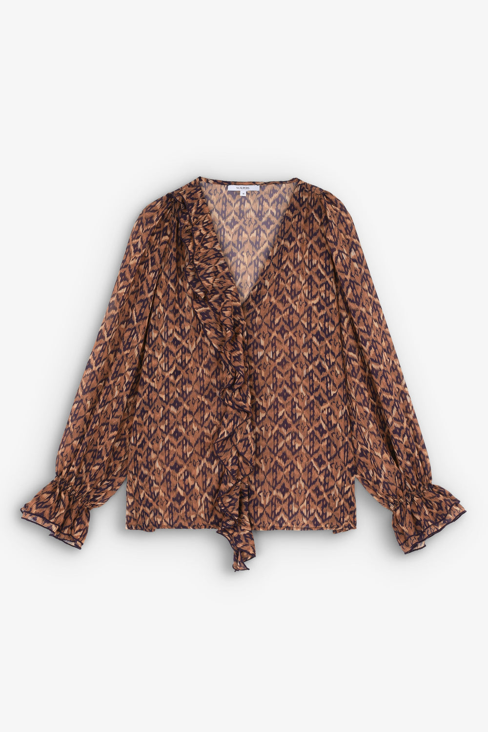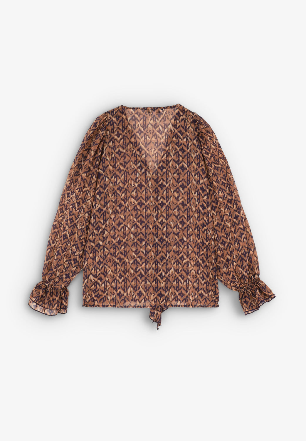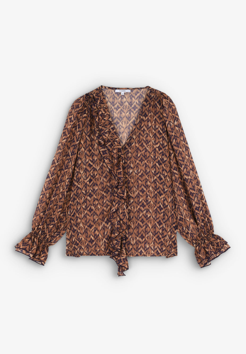 Ethnic blouse made of flowing fabric. Regular fit, V-neck with ruffle detail and long sleeves with elastic cuffs.
