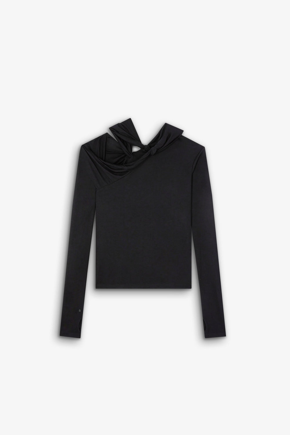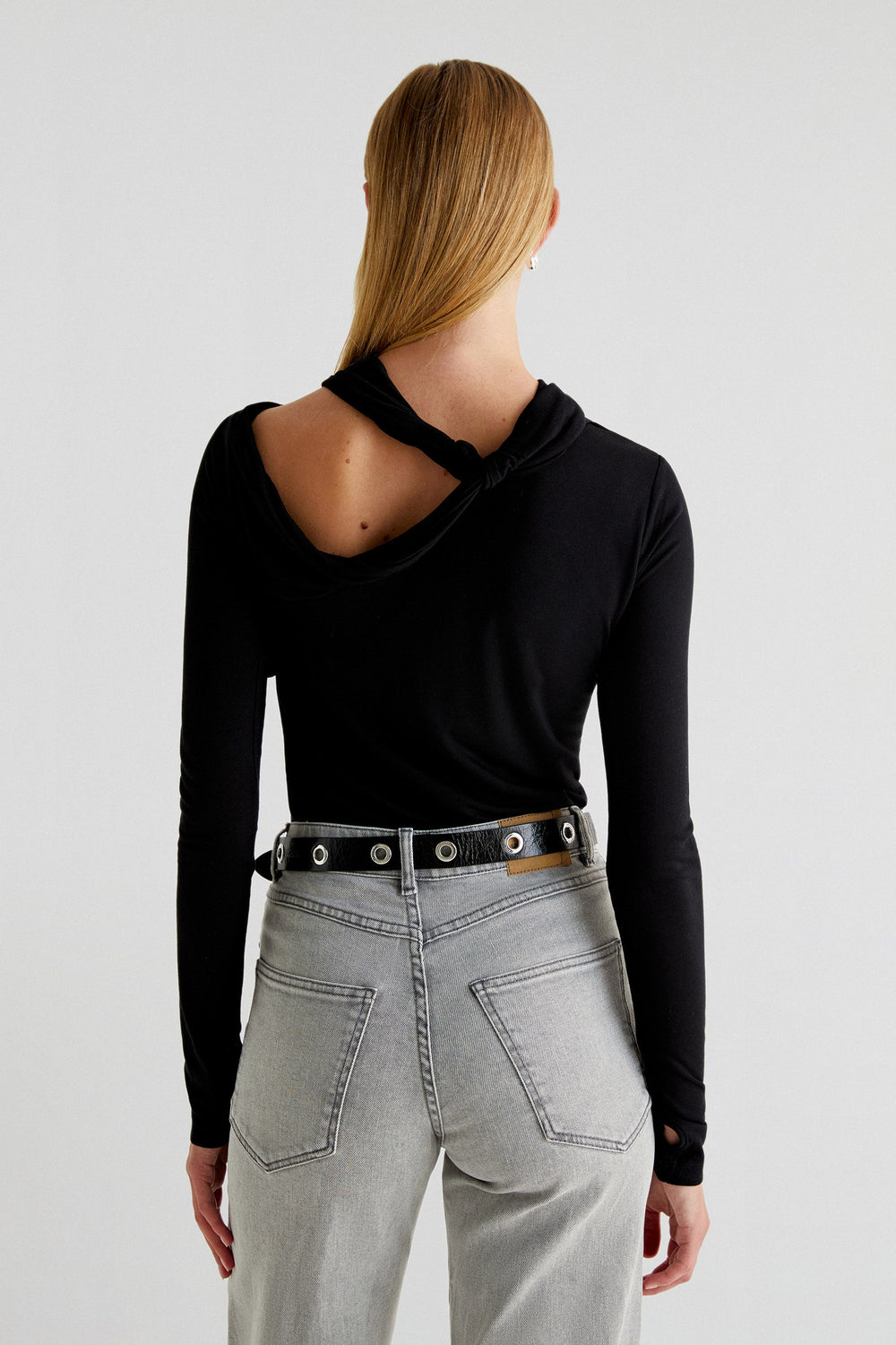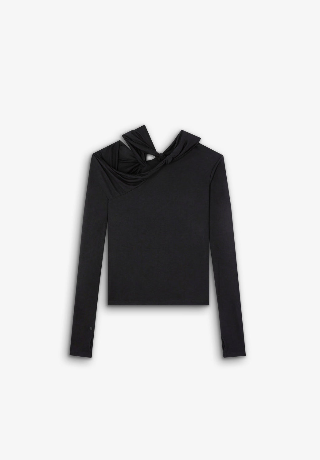 Top made of slightly stretchy fabric. Slim fit, neckline with knot and strap detail and long sleeves.