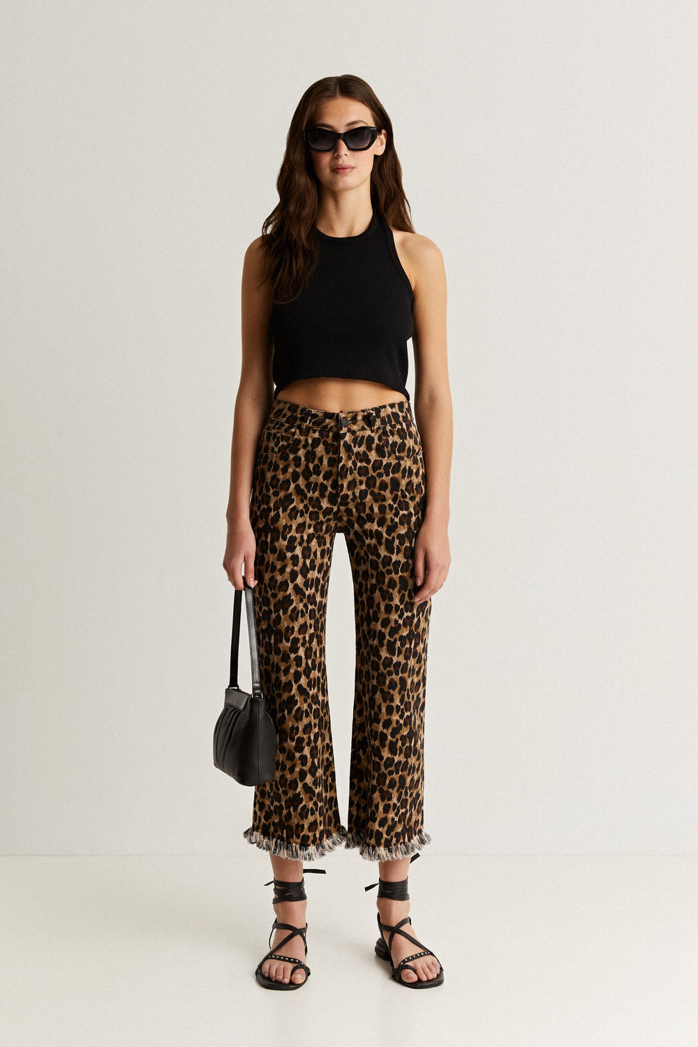 ANIMAL PRINT TROUSERS WITH FRAYED HEM