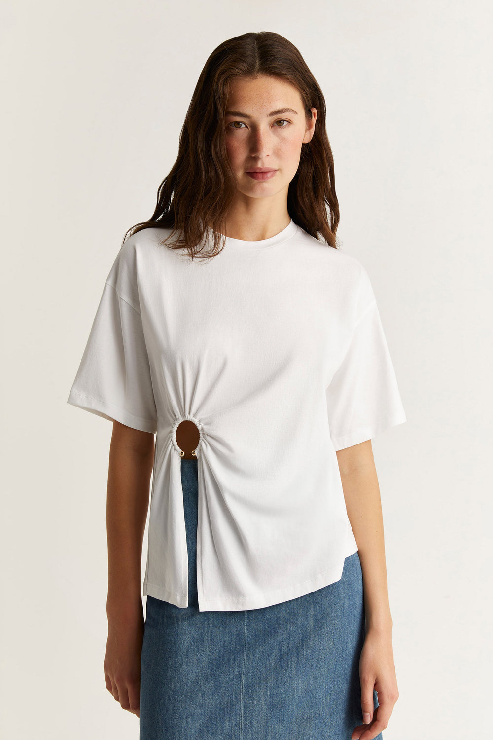 T-SHIRT WITH FRONT BUTTONHOLE DETAIL