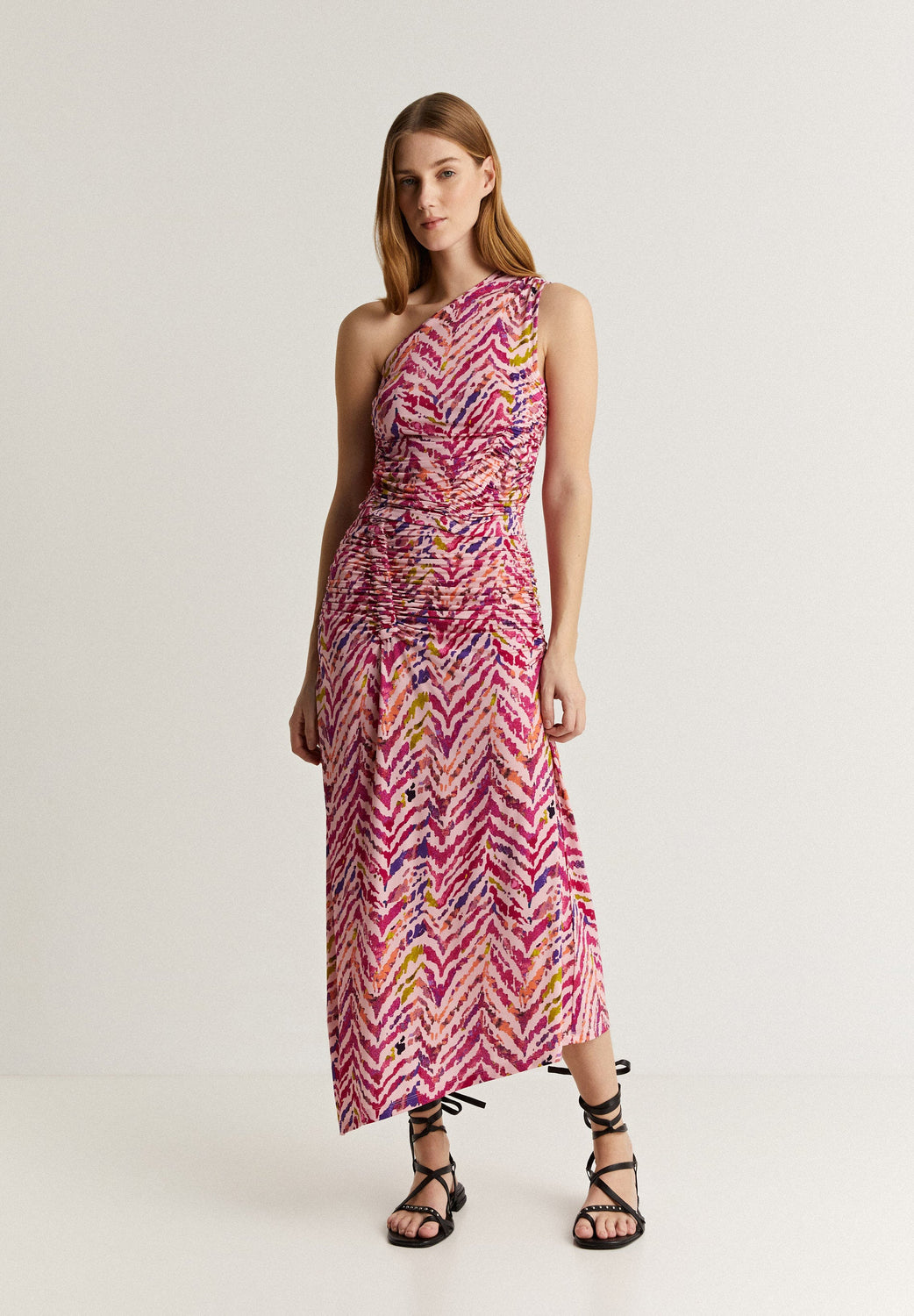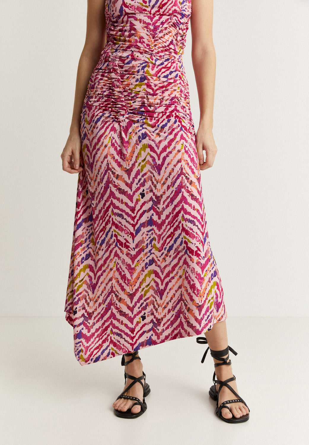 PRINTED MIDI SKIRT WITH GATHERED DETAIL