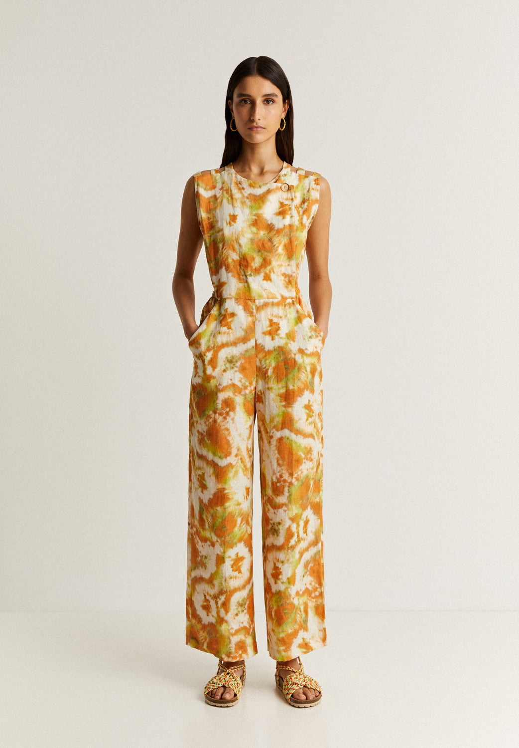 TIE-DYE LINEN JUMPSUIT WITH DOUBLE MULTI-POSITION NECKLINE
