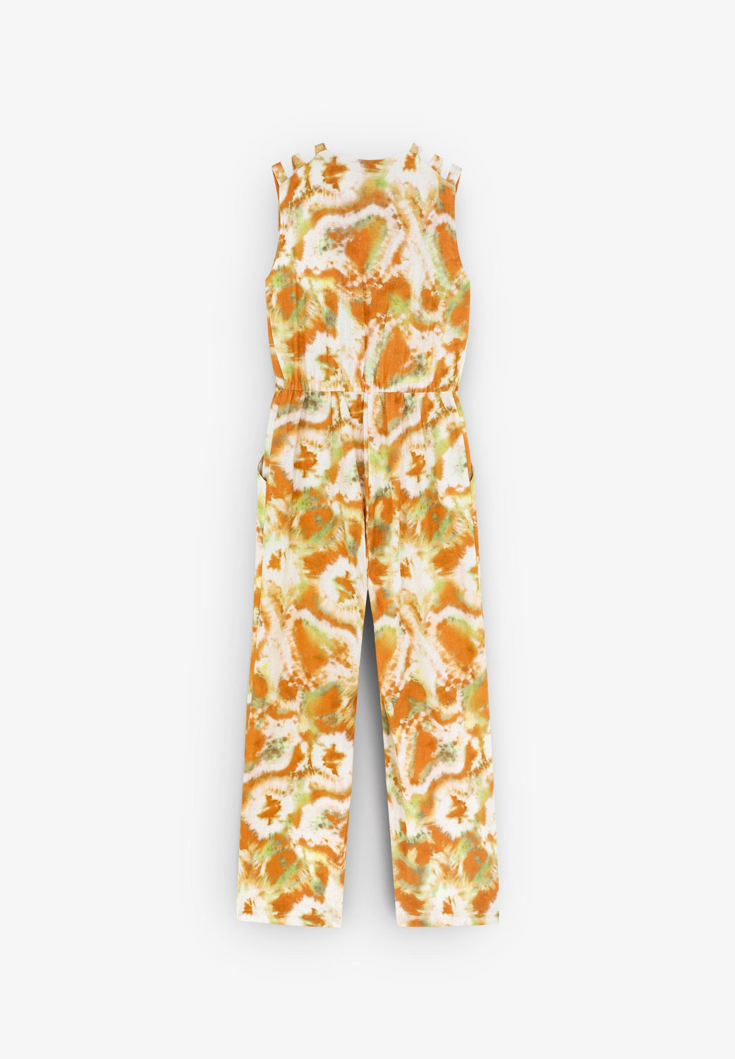 Tie-dye jumpsuit with straps detail on the shoulders.