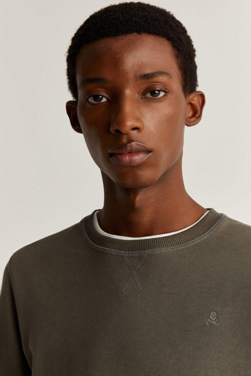 Basic sweatshirt with matching embroidered skull detail on the chest.