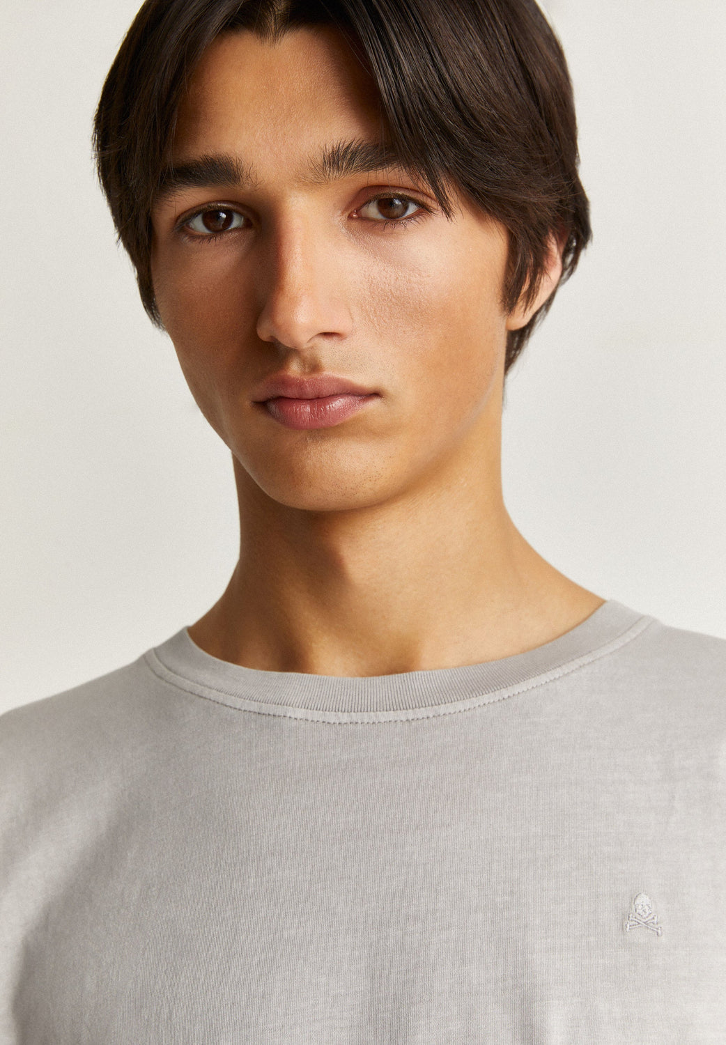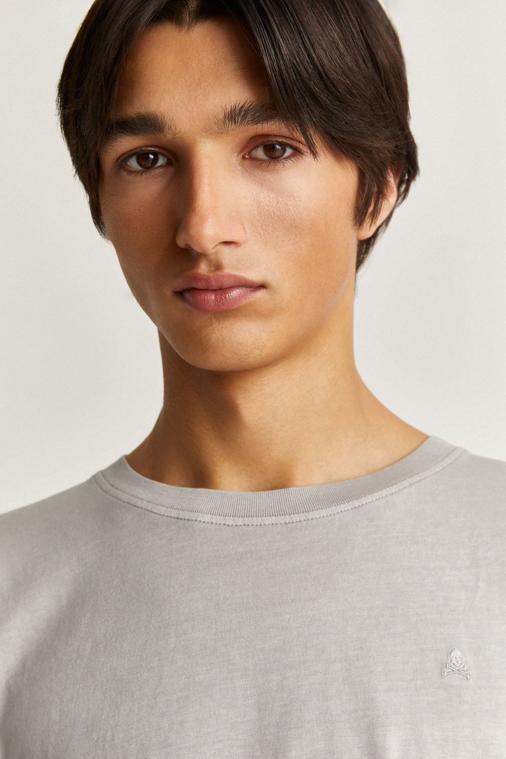 Washed effect T-shirt with matching embroidered skull on chest