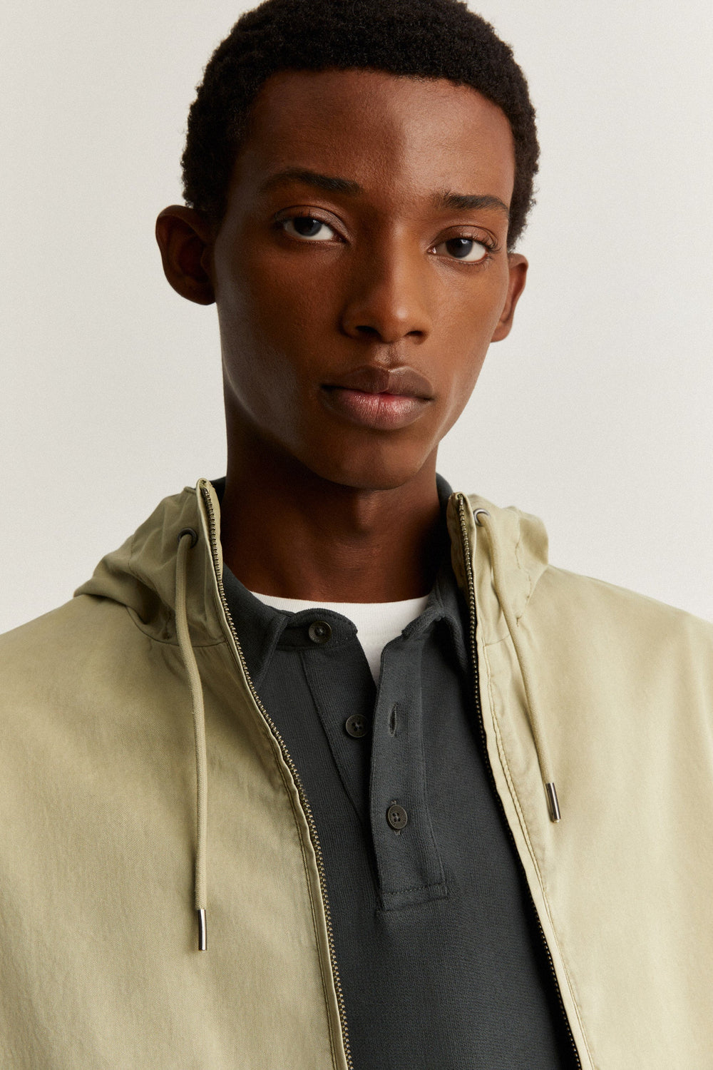 • Collar with an adjustable drawstring hood