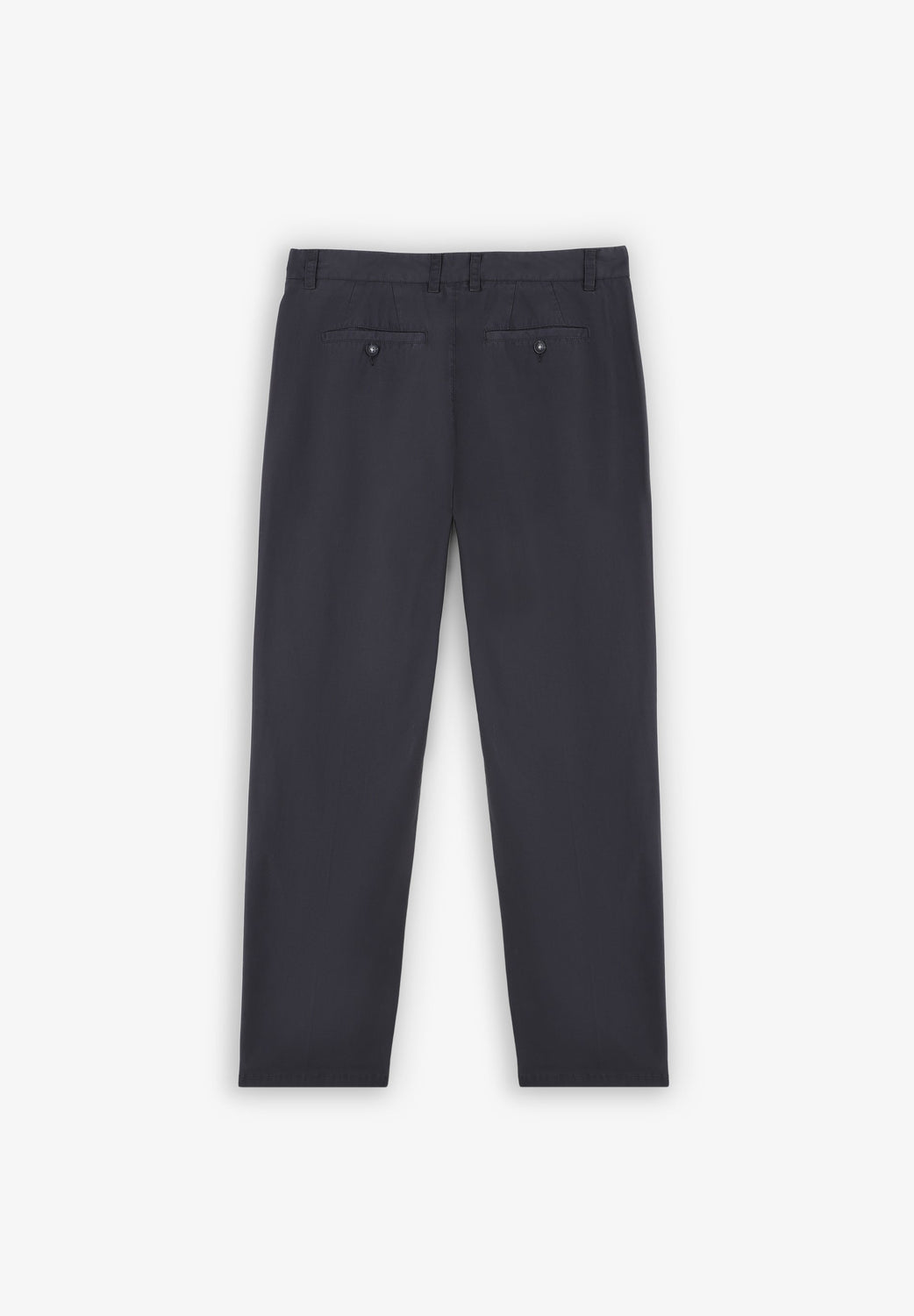 • Piped back pockets with button
