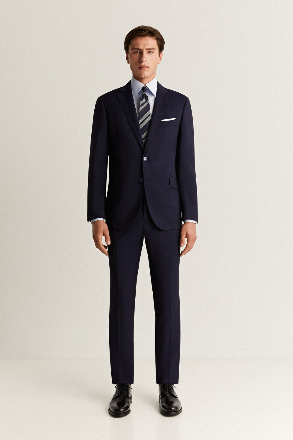 CLASSIC PLAIN-COLOURED NAVY BLUE SUIT