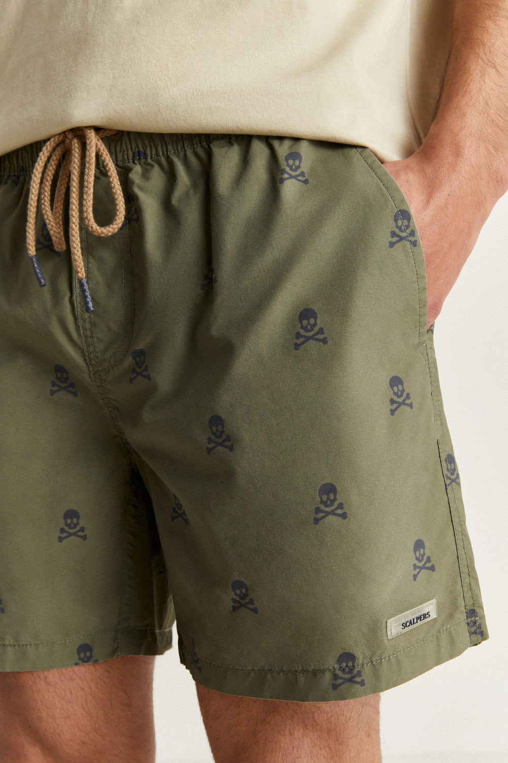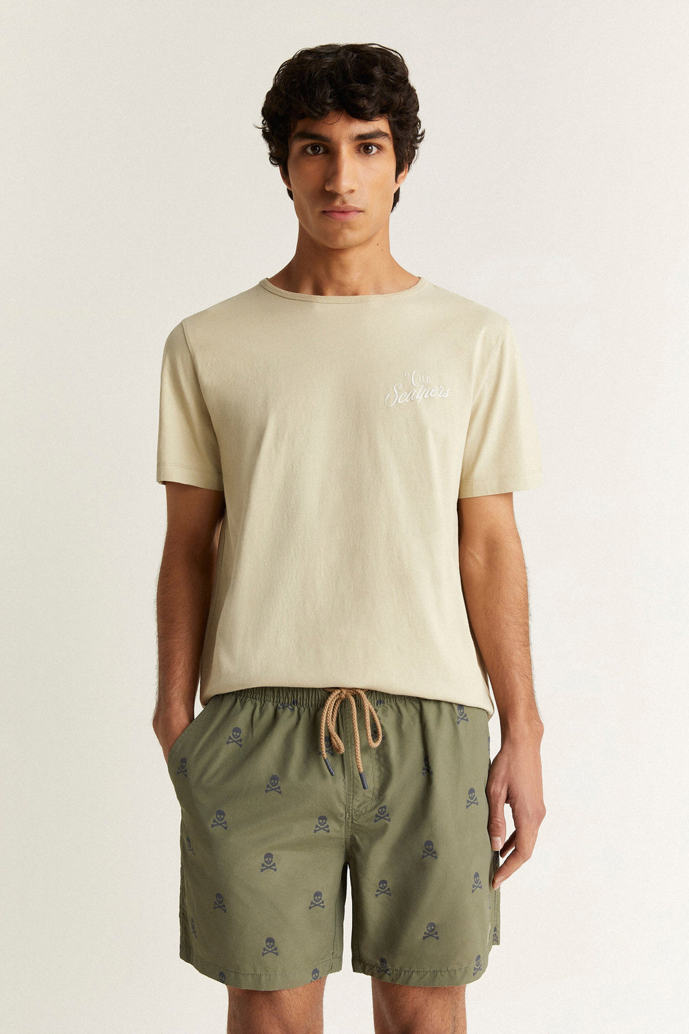 Swimming trunks with all-over skulls print.