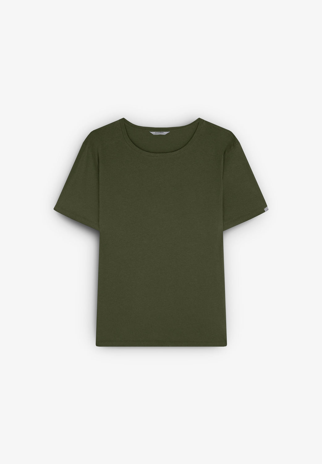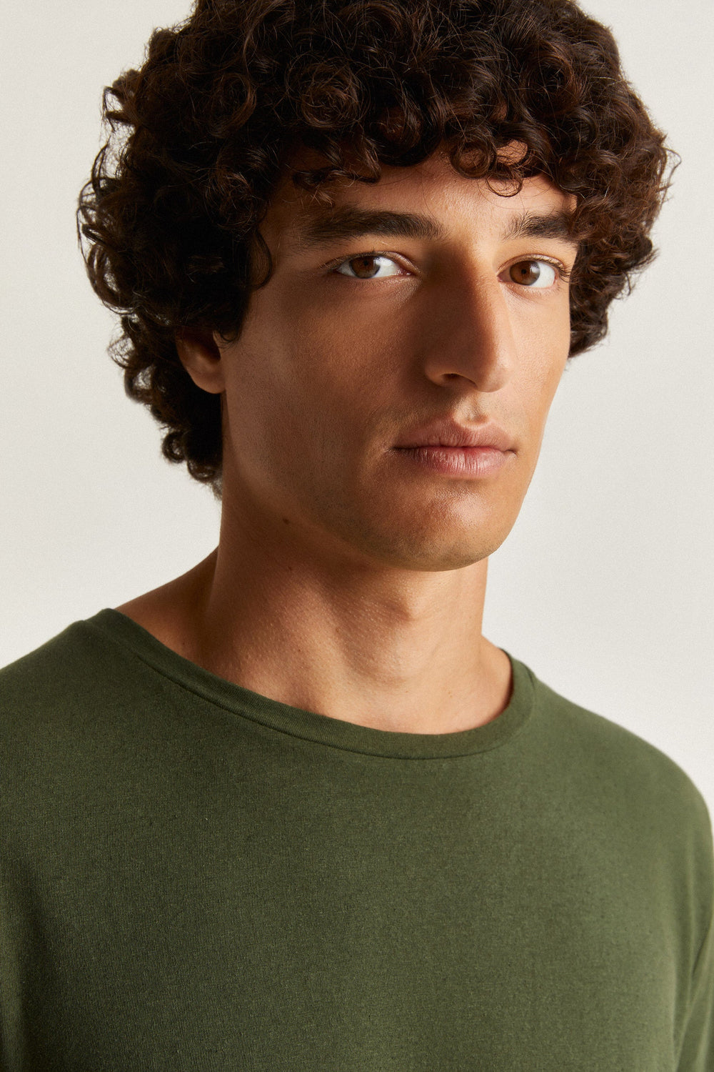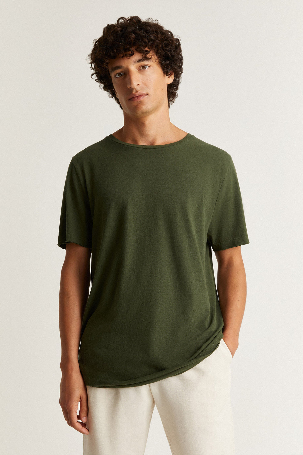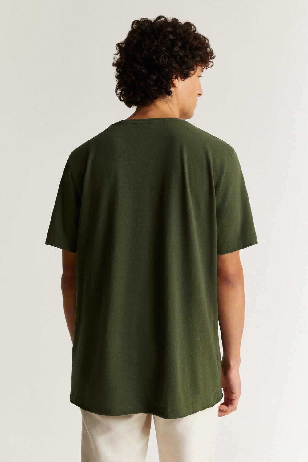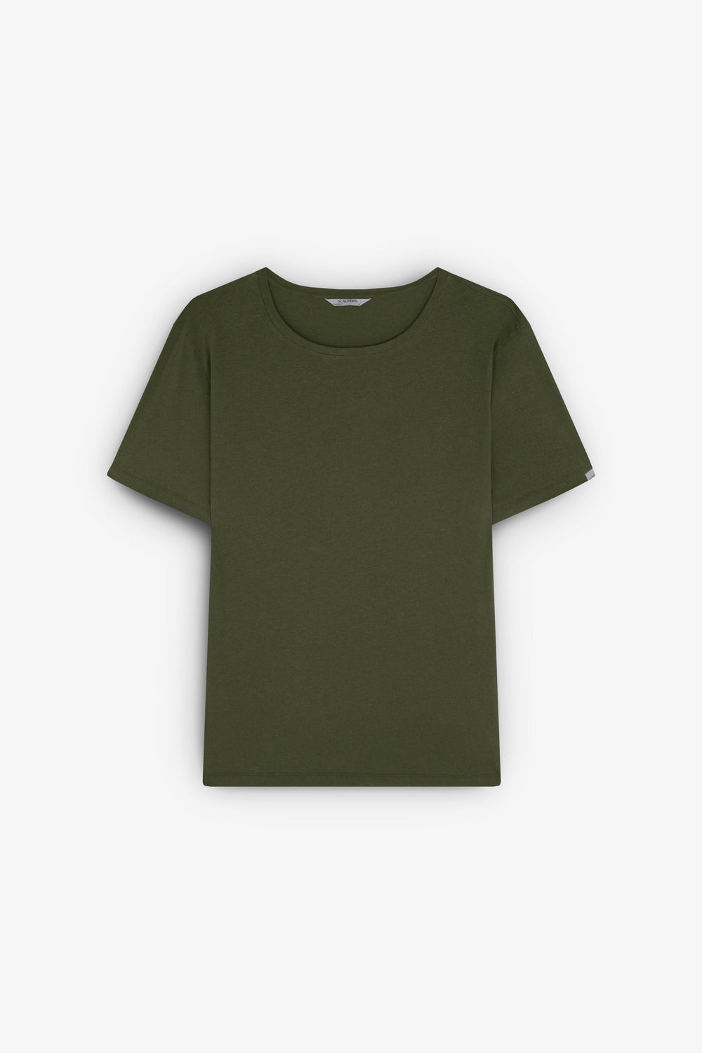 Plain-coloured linen T-shirt.