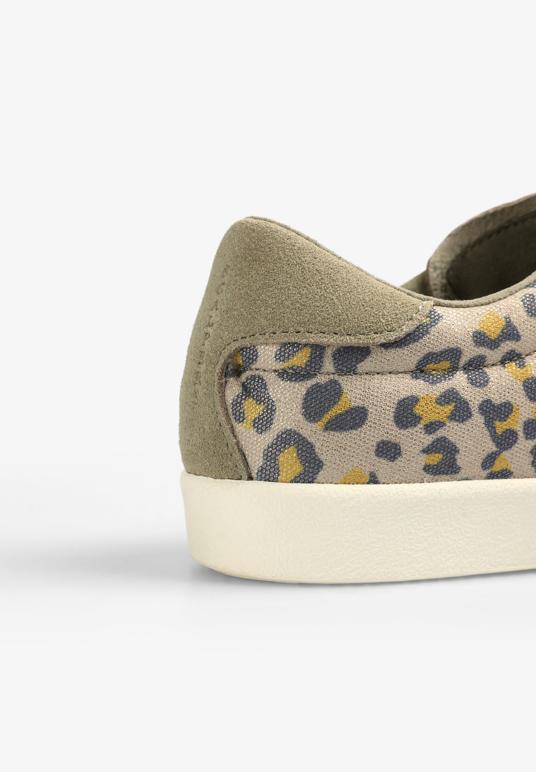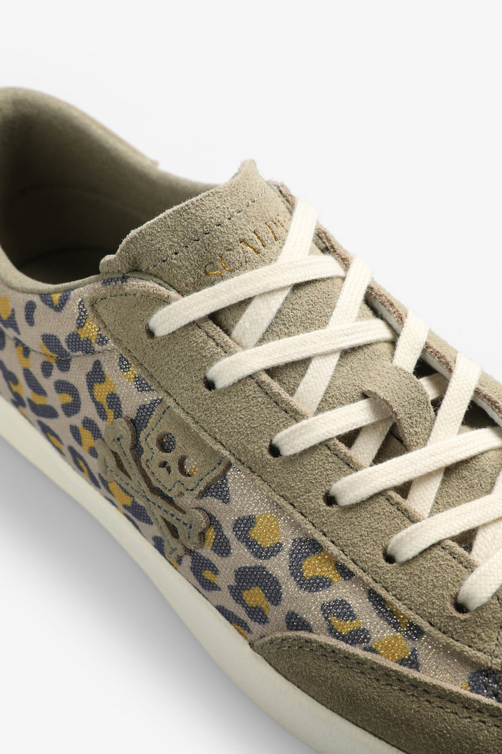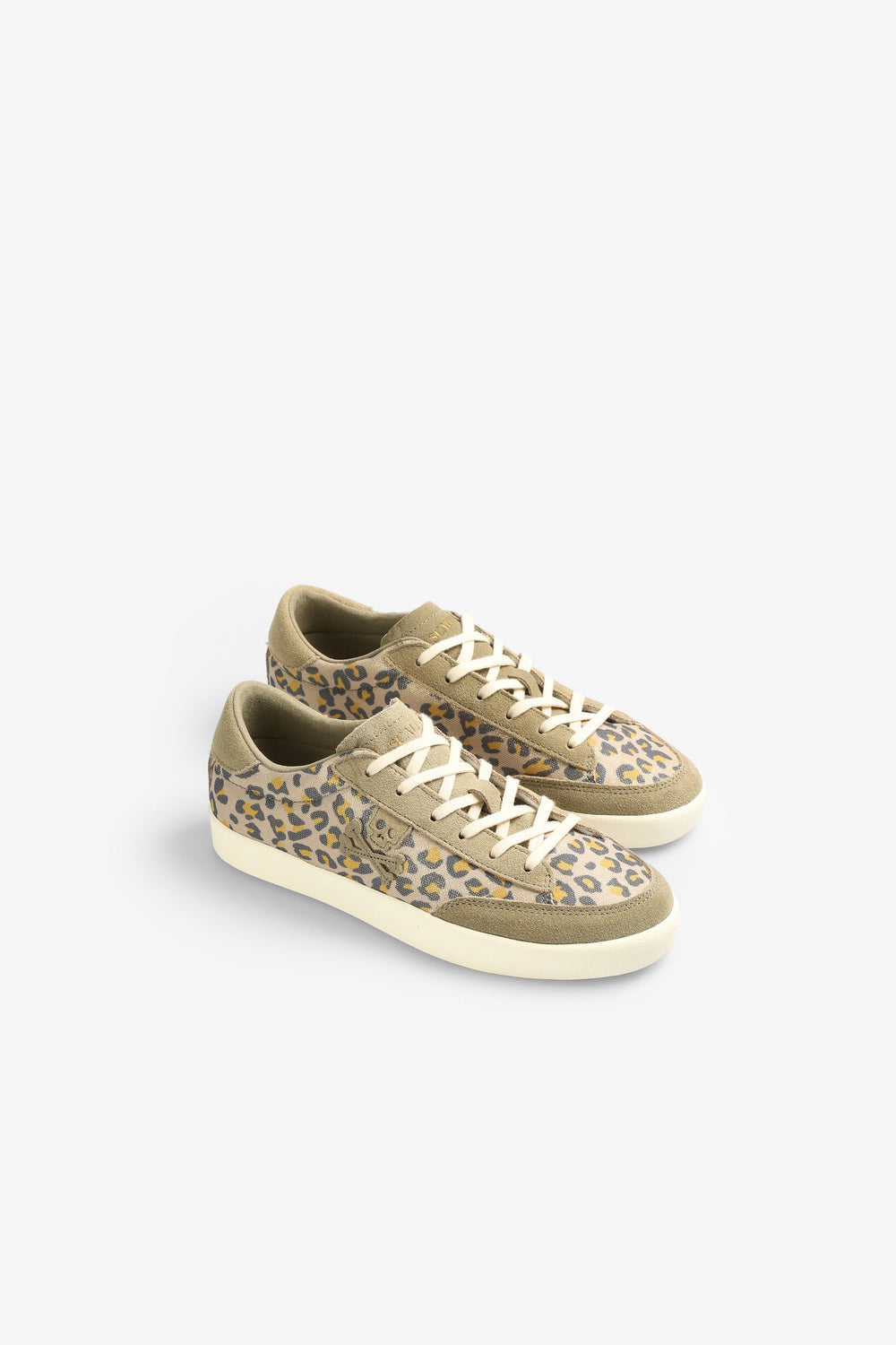 Low-top sneakers in animal print with suede skull on the side.