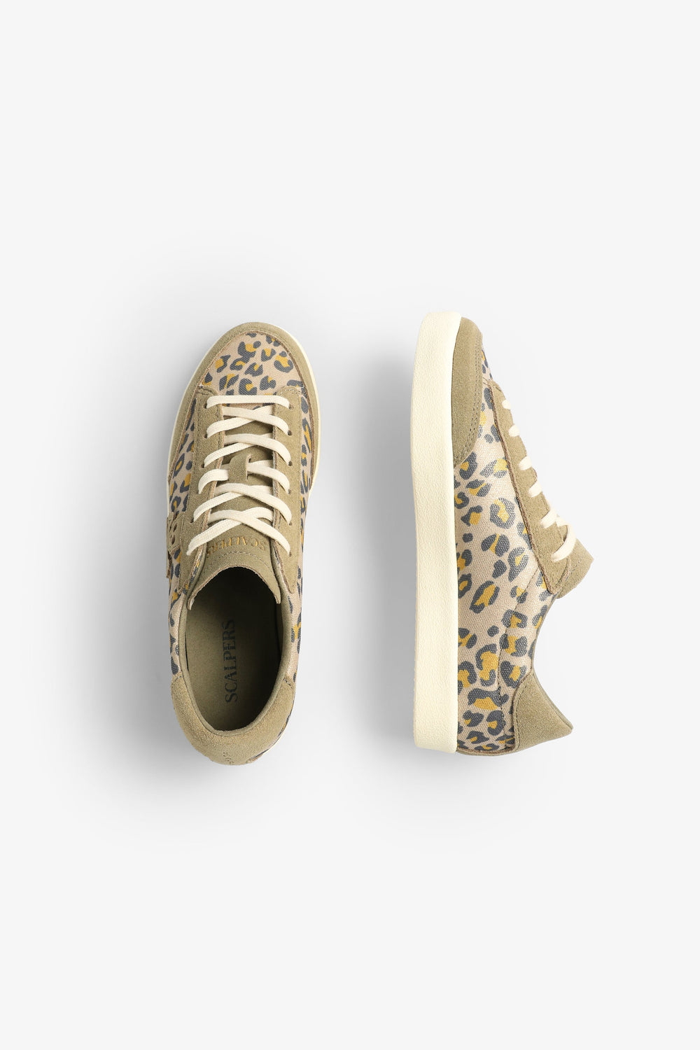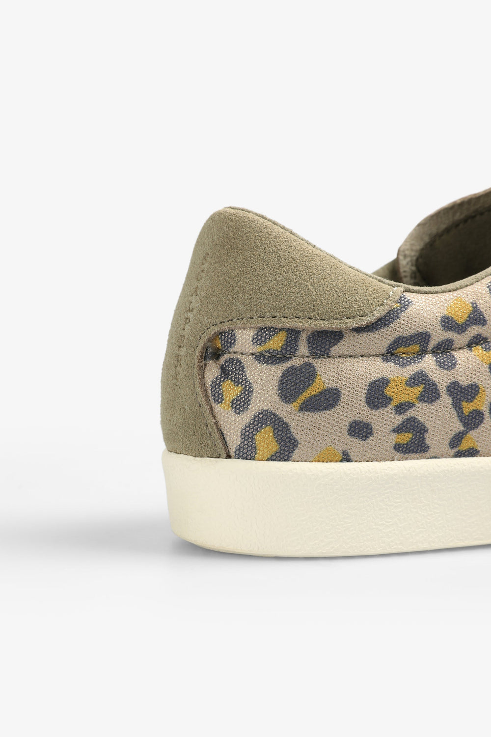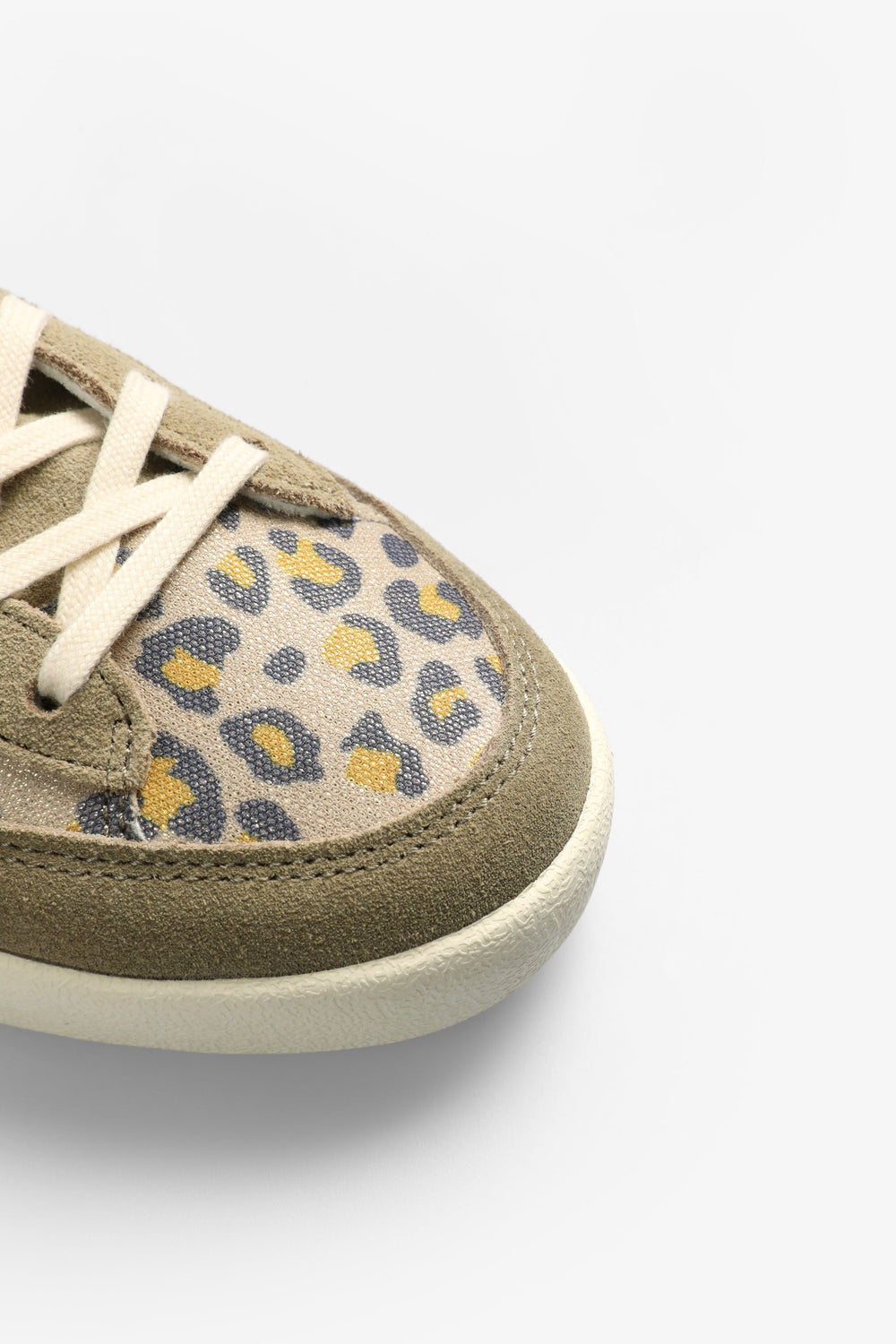 Low-top sneakers in animal print with suede skull on the side.