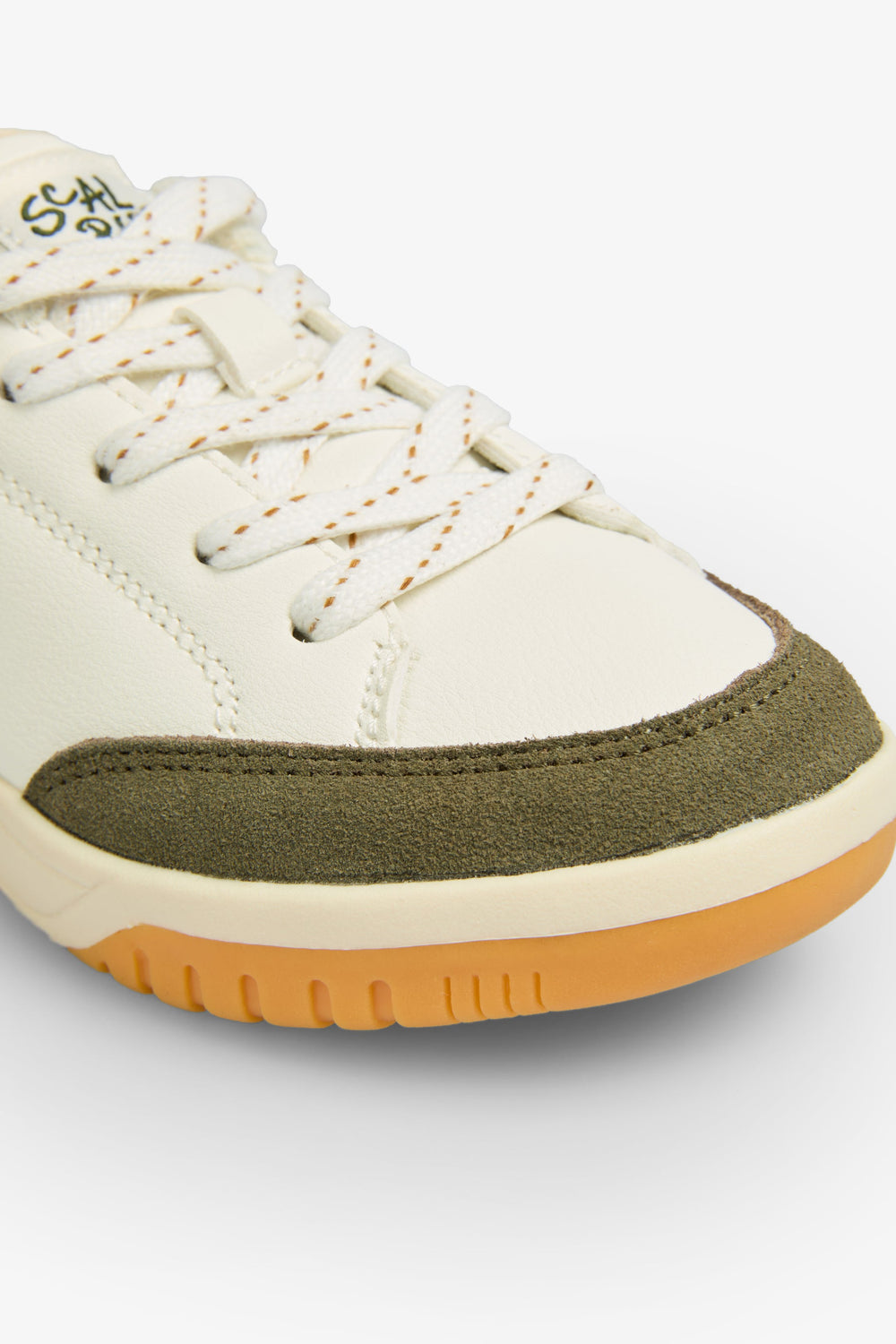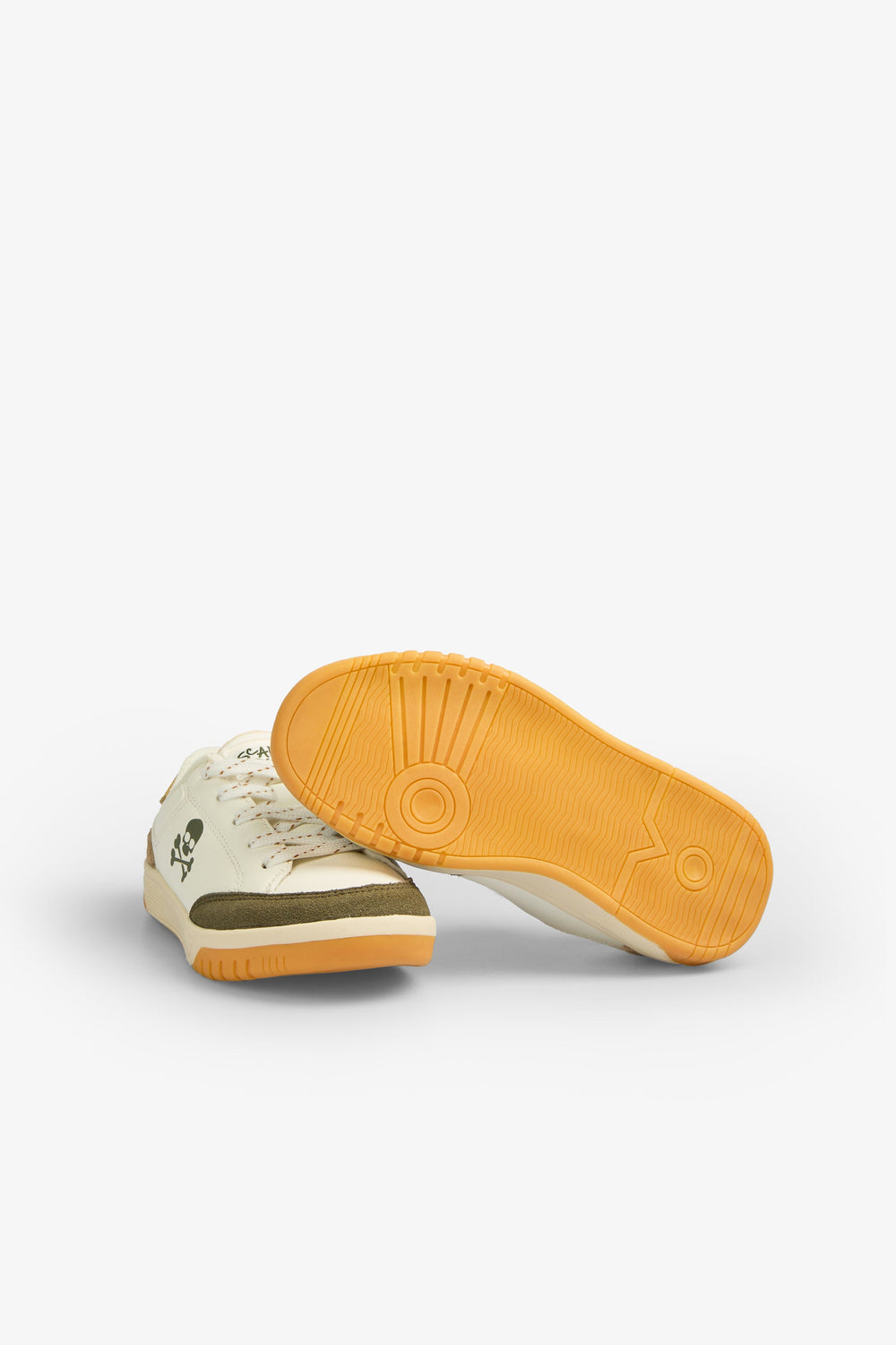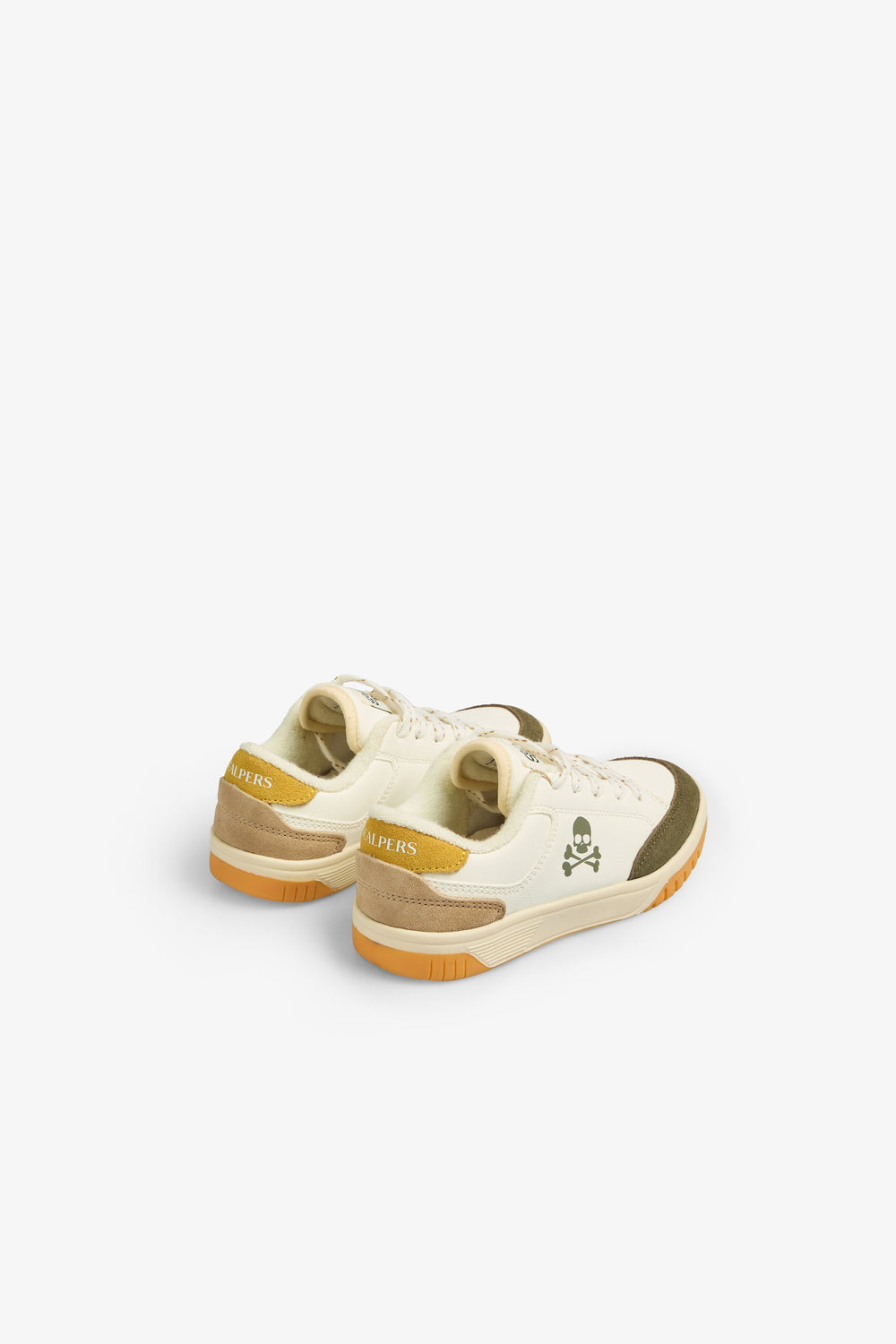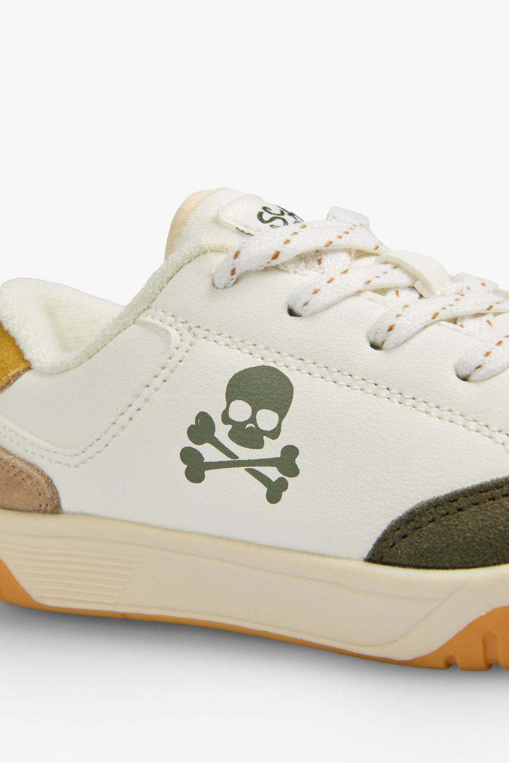 Leather sneakers with split suede details. Matching lace-up fastening, rubber soles and contrast heels. Side skull details.