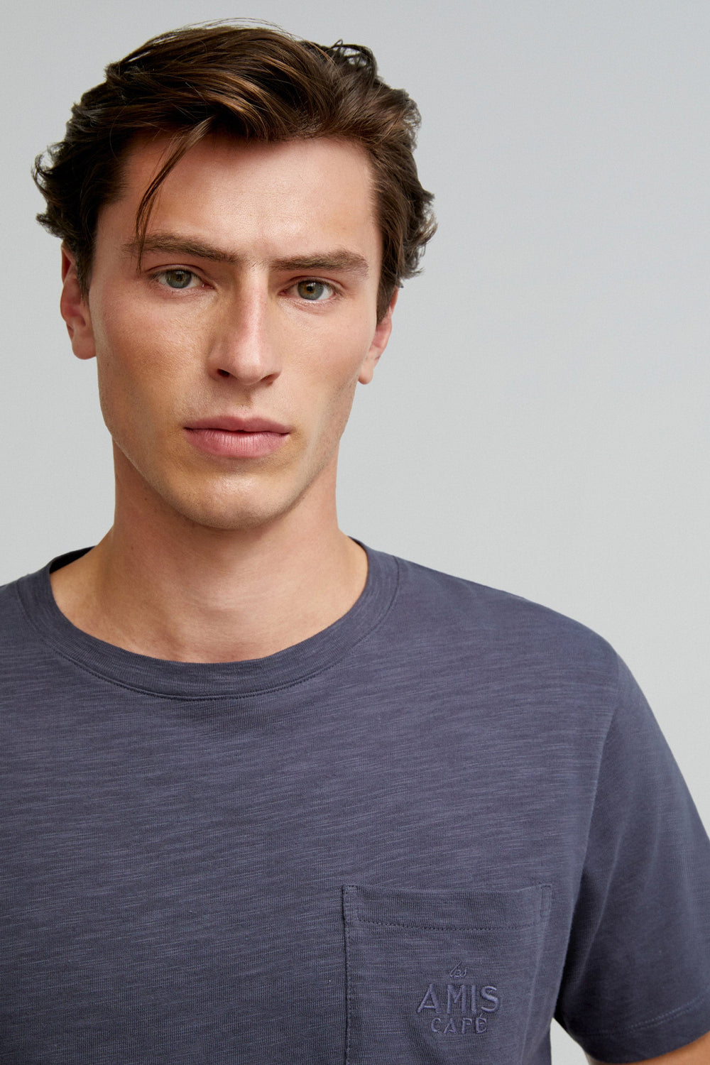 T-shirt made of 100% BCI cotton. Regular fit, round neck and short sleeves. Chest pocket with matching embroidered detail.