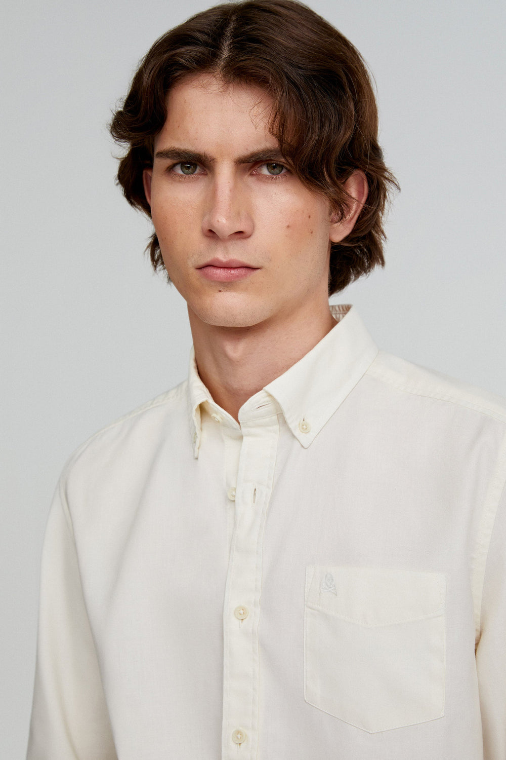 Shirt made of 100% BCI cotton. Regular fit, collar with buttons and button fastening. Long sleeves with buttoned cuffs and matching skull pocket.
