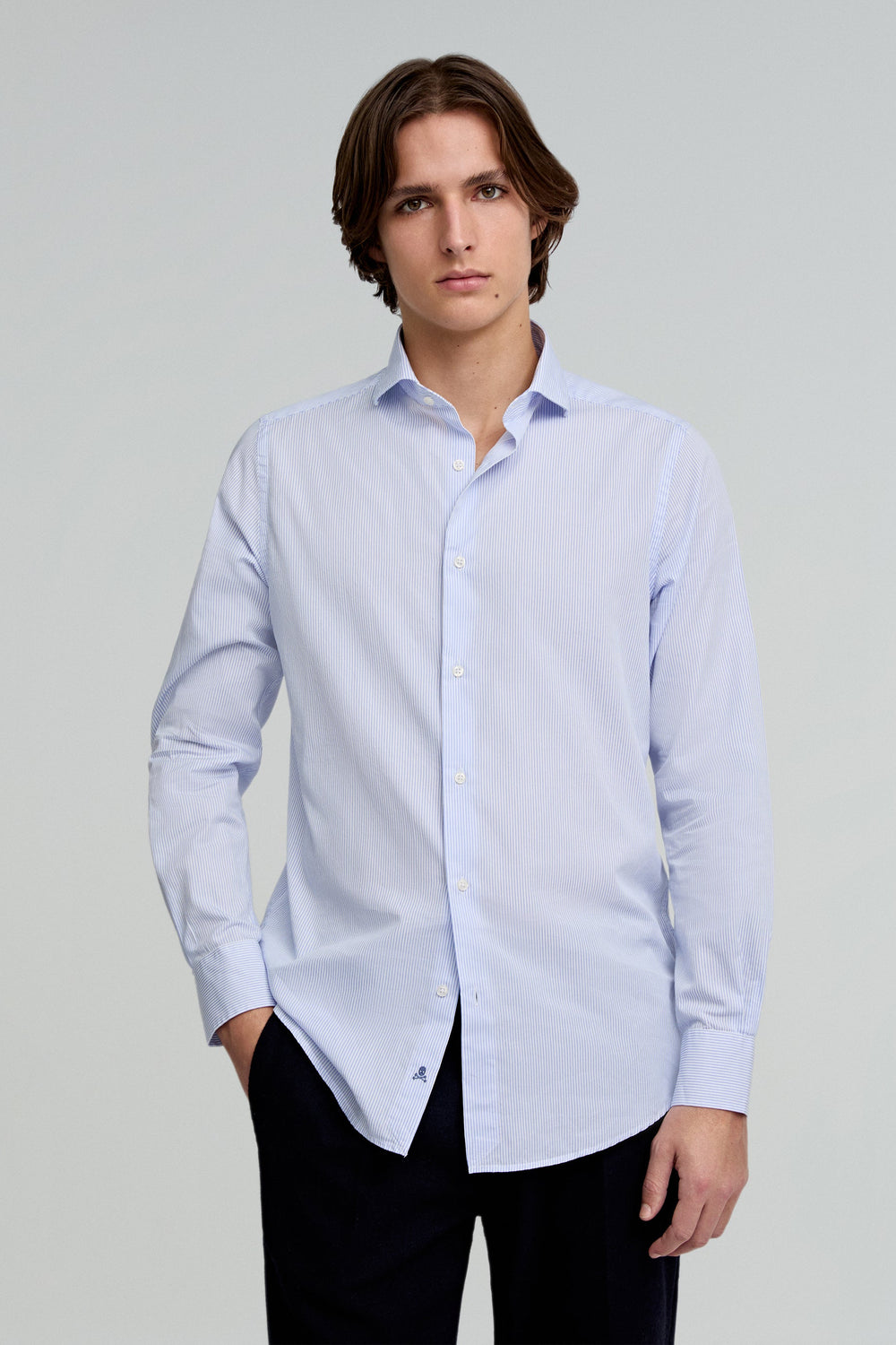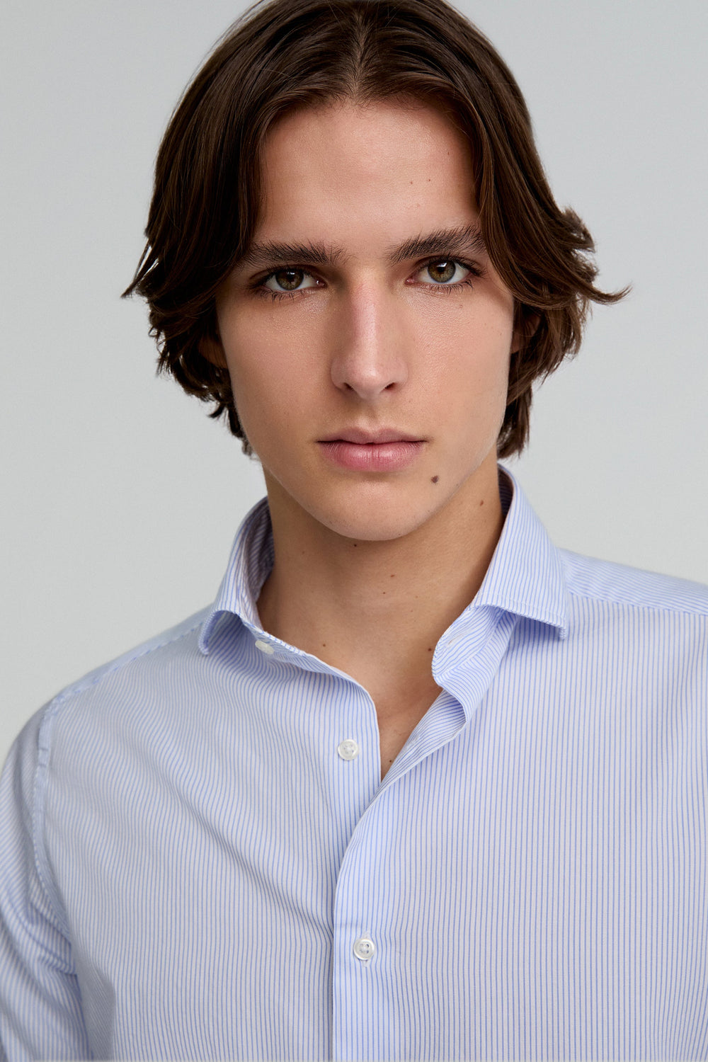 Dress shirt made of 100% cotton. Slim fit, Kent collar and button fastening. Long sleeves with cuffs.