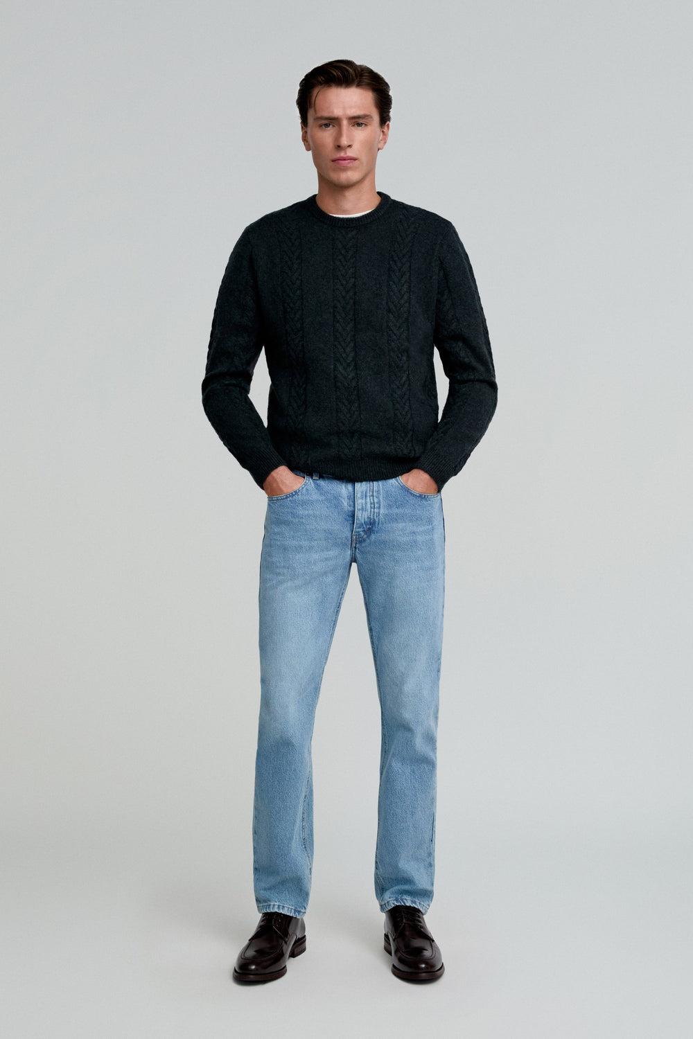 Sweater made of an alpaca blend. Regular fit, round neck and long sleeves. Cable-knit details.