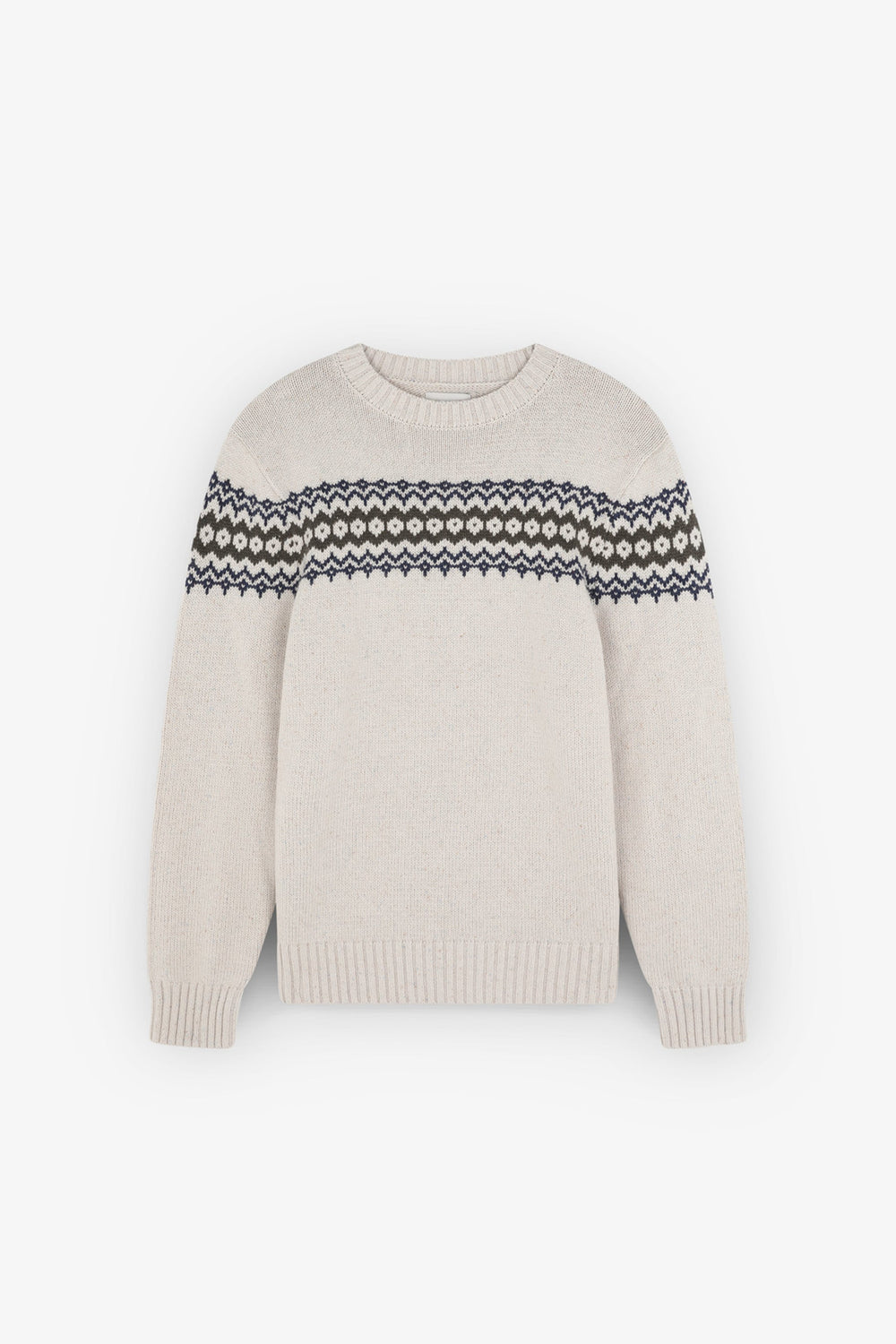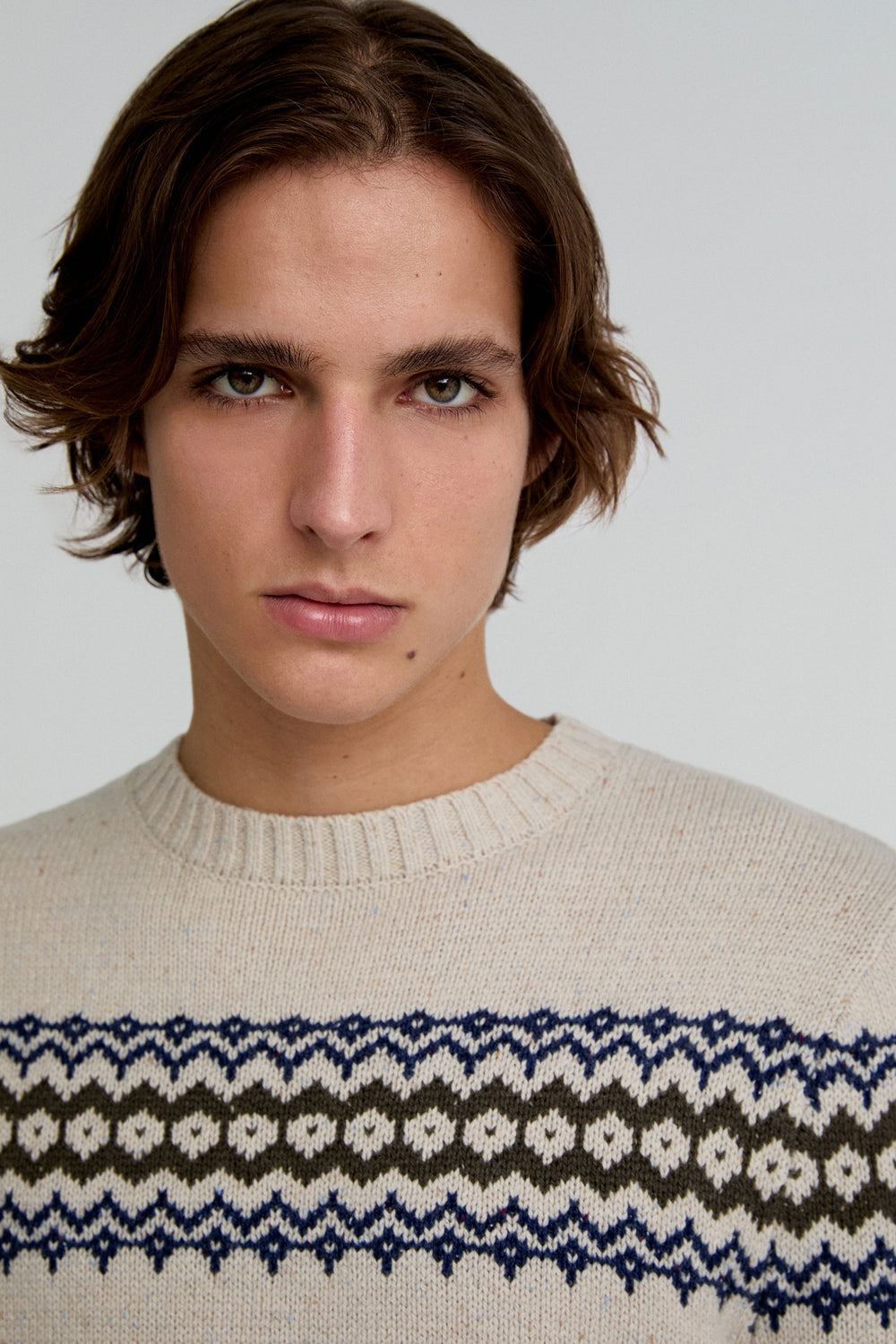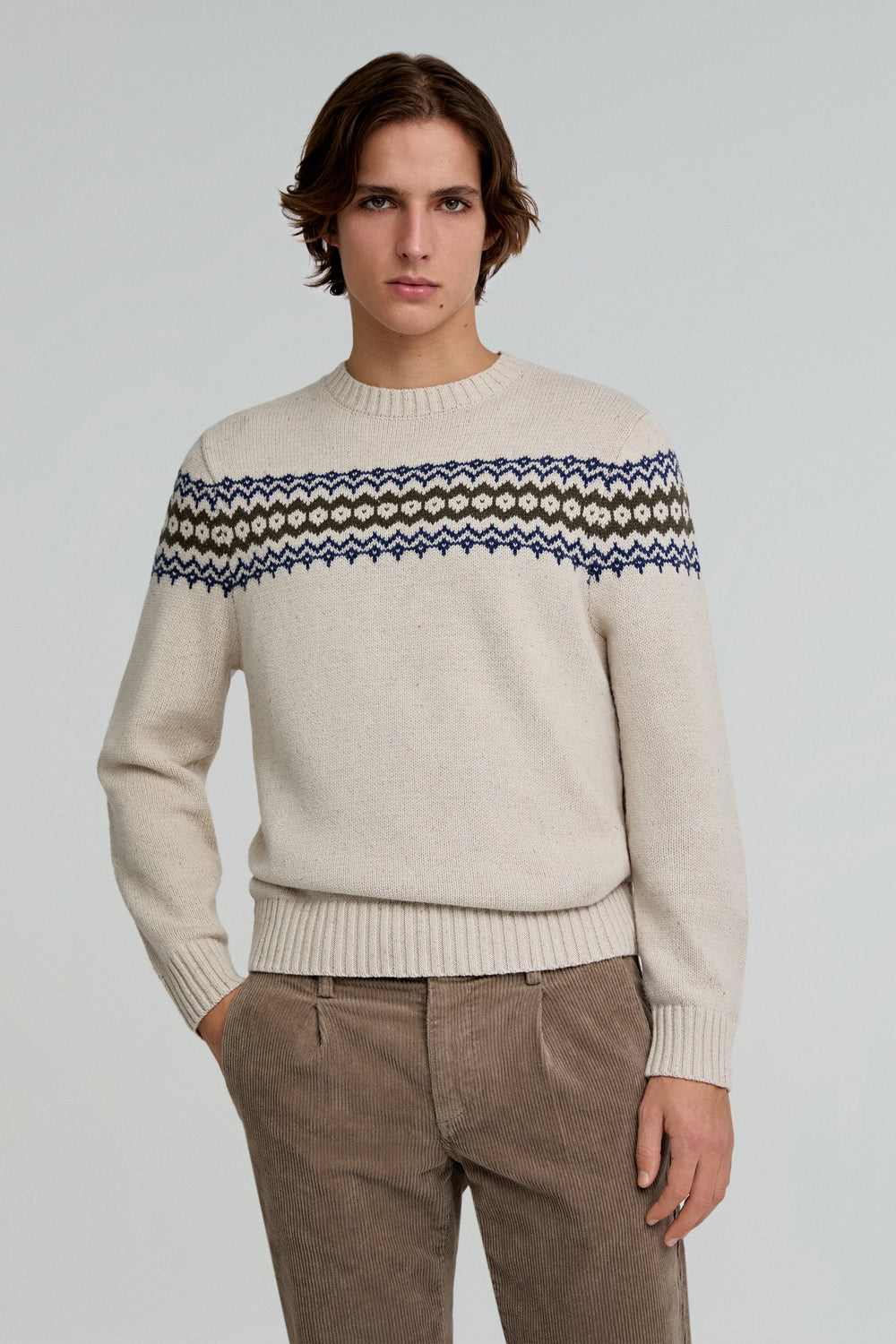 Sweater made of a merino wool and cotton blend. Regular fit, round neck and long sleeves. Winter motif details.