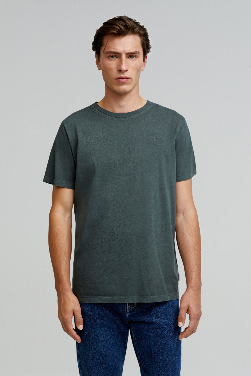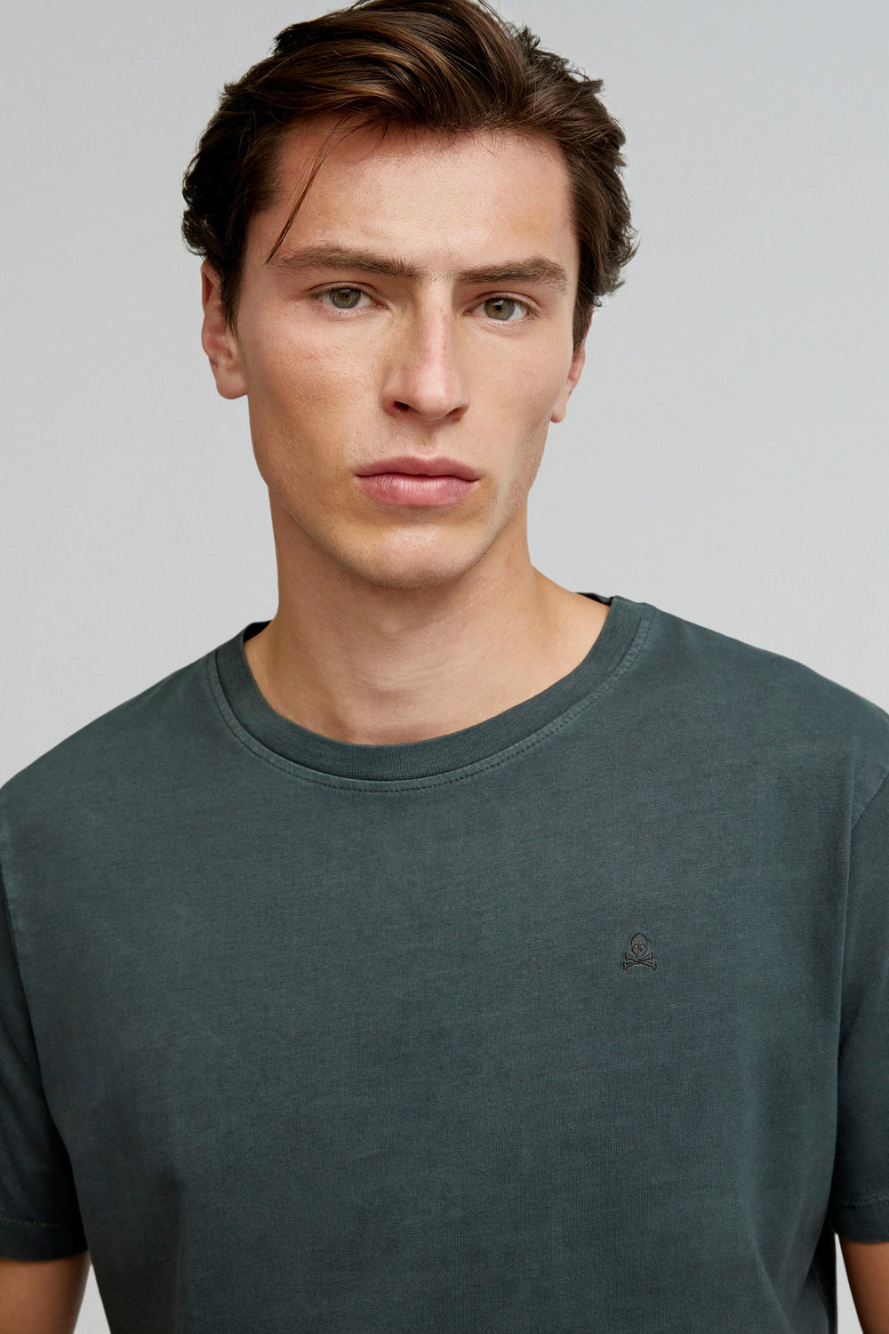 Faded T-shirt made of 100% BCI cotton. Regular fit, round neck and short sleeves. Matching embroidered skull detail.