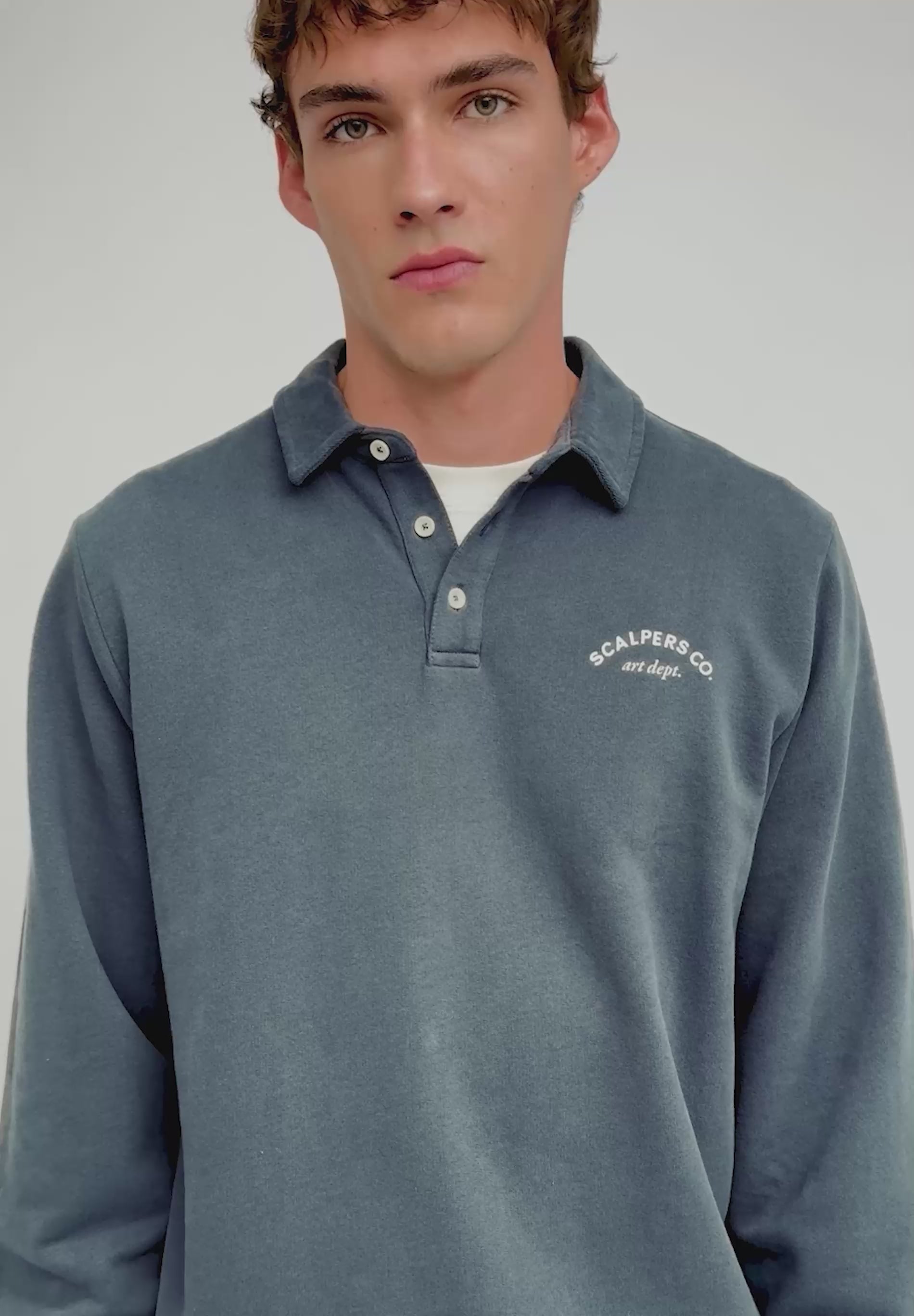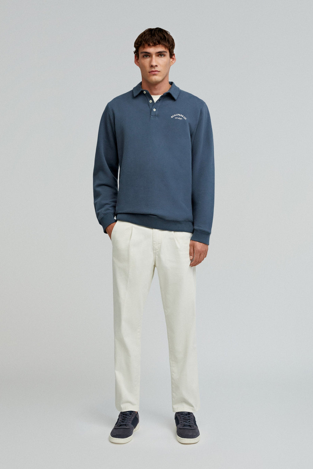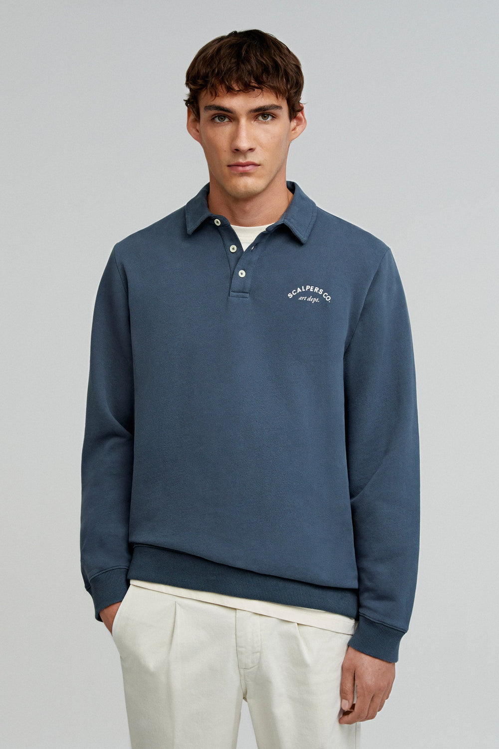Sweatshirt made of 100% BCI cotton. Regular fit, classic buttoned collar and long sleeves. Print on the chest.