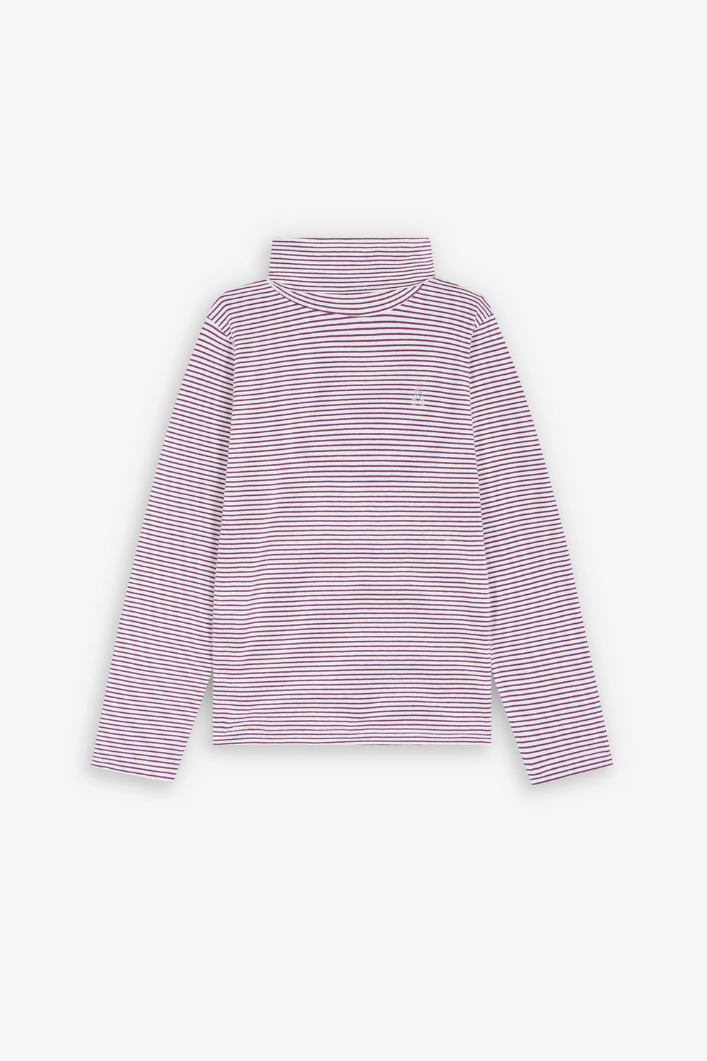 T-shirt with stripe print. High collar. Long sleeves. Slightly oversize design. Made of 100% cotton.