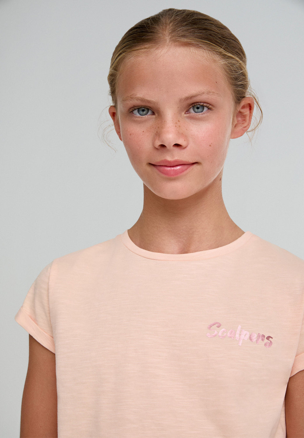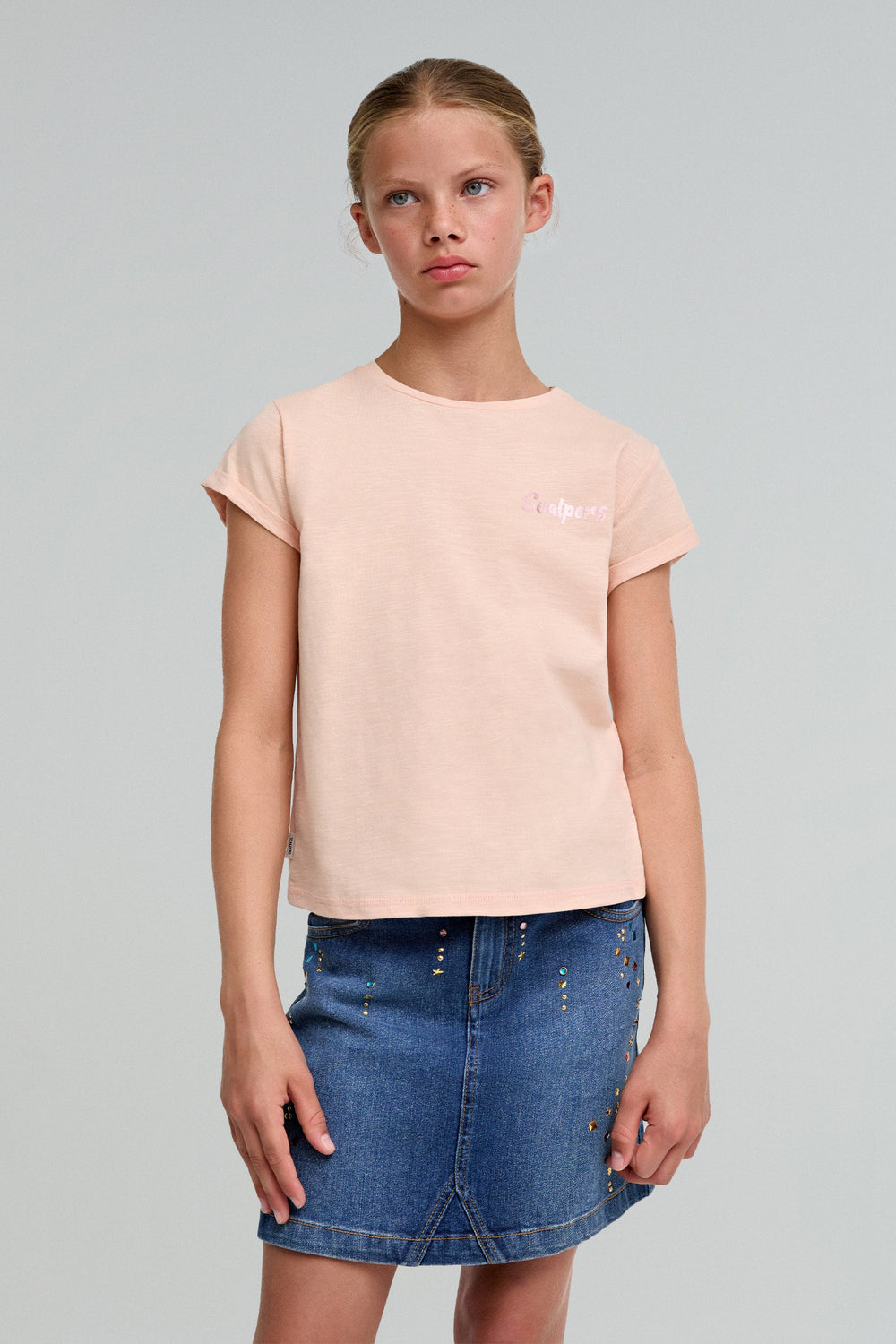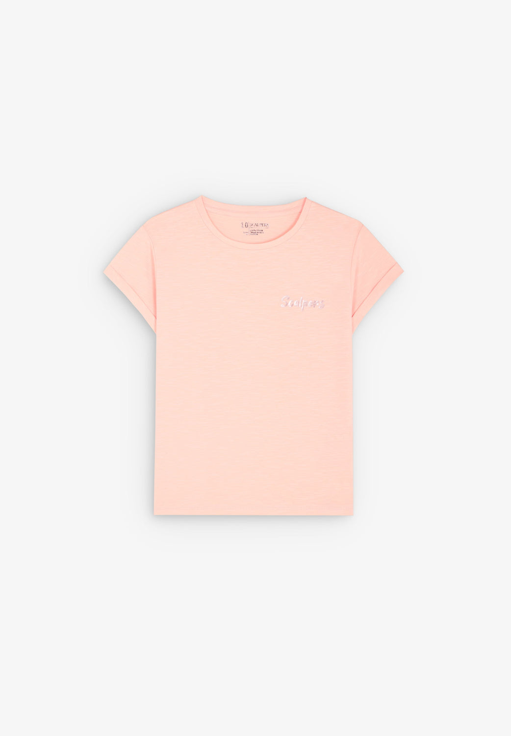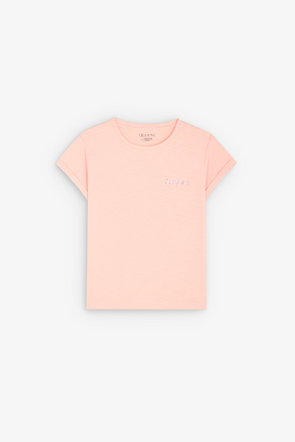 T-shirt in slub knit fabric with iridescent back print. Made of 100% BCI cotton. Regular fit. Round collar. Short sleeve with turn-up. Contrast front logo detail.
