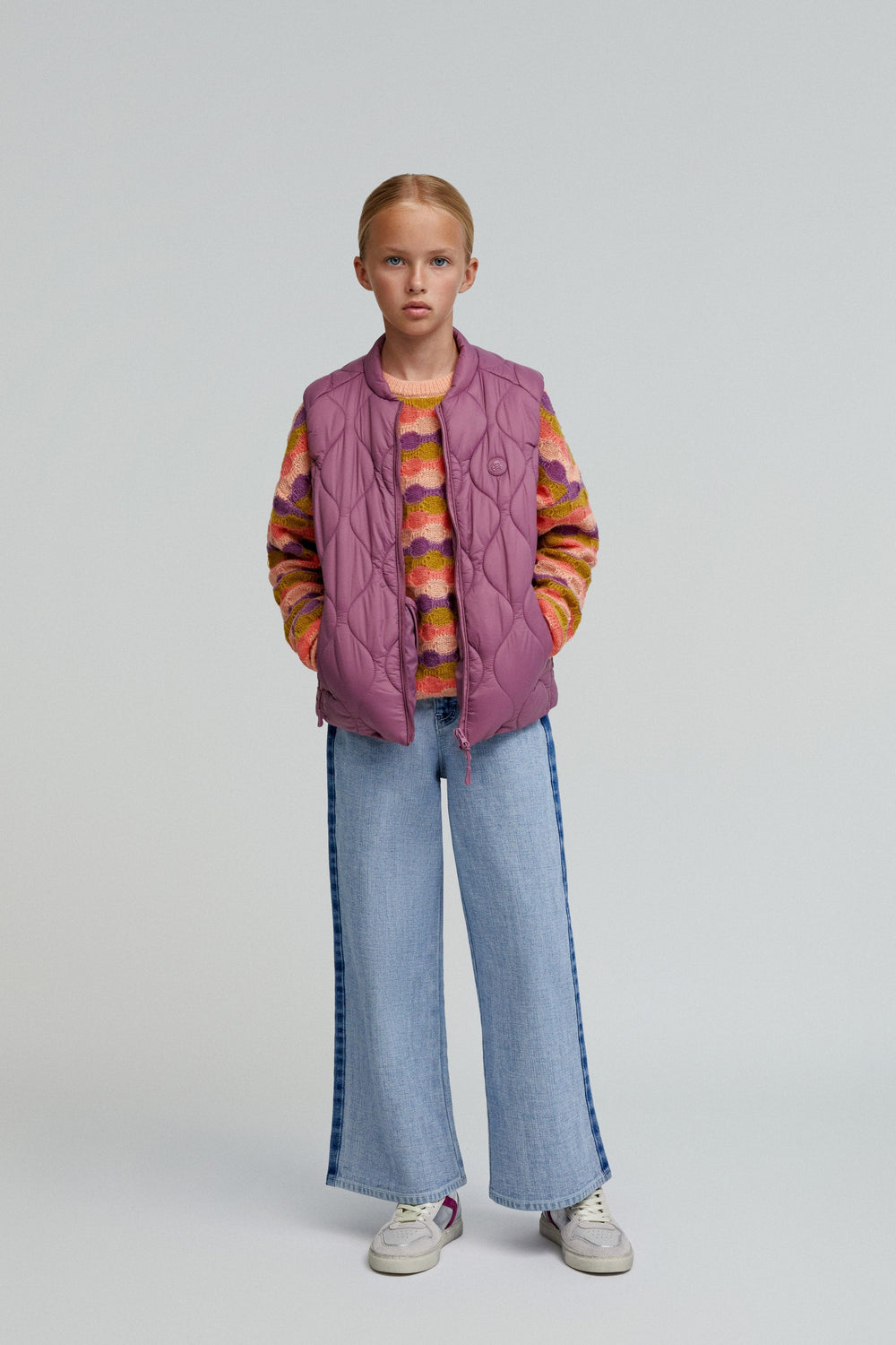 Quilted gilet with skull logo on chest. Made of windproof 100% recycled nylon fabric. Regular fit. Slightly high collar. Double slider zip fastening. Sleeveless with elasticated armholes. Outer and inner pockets.