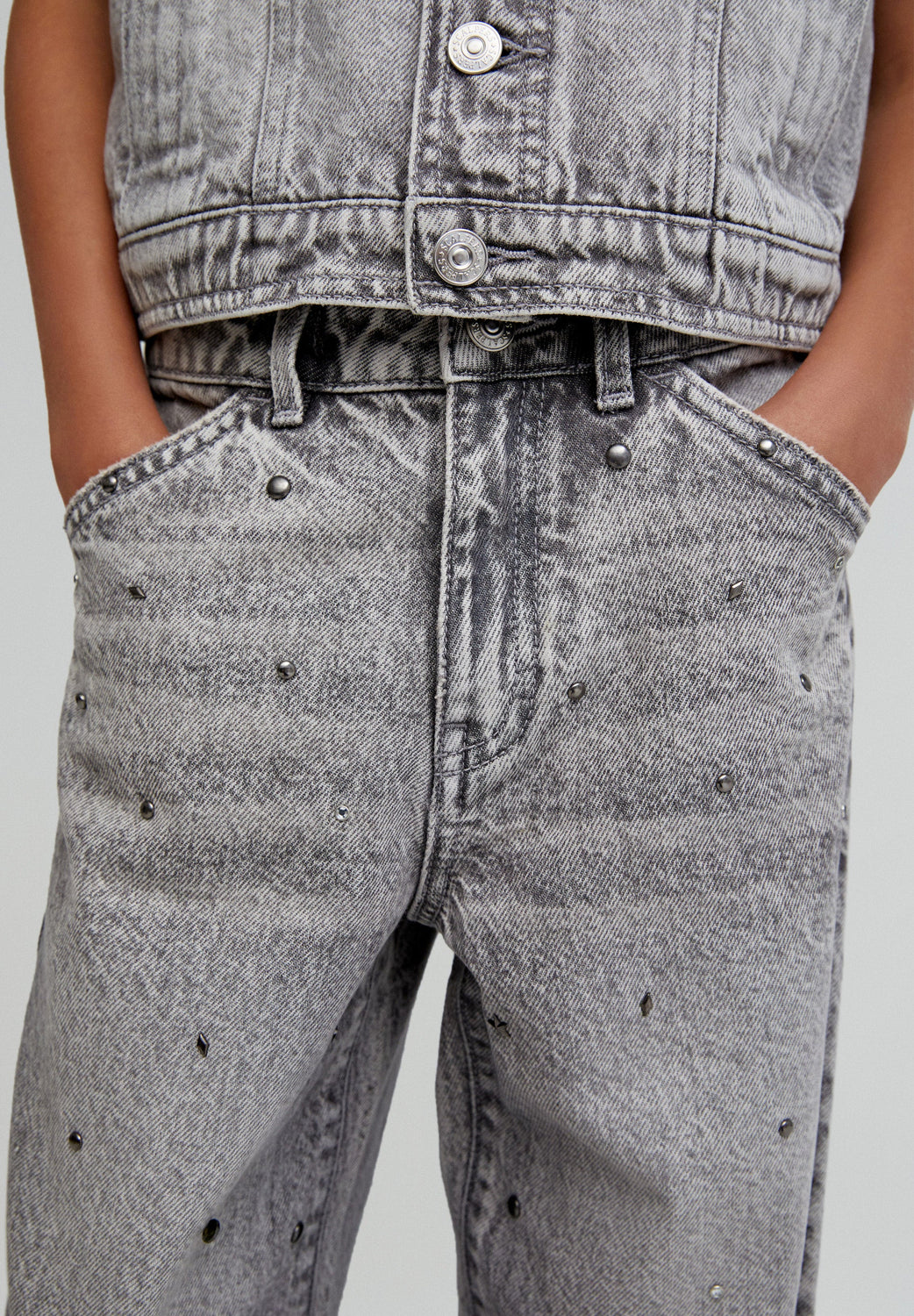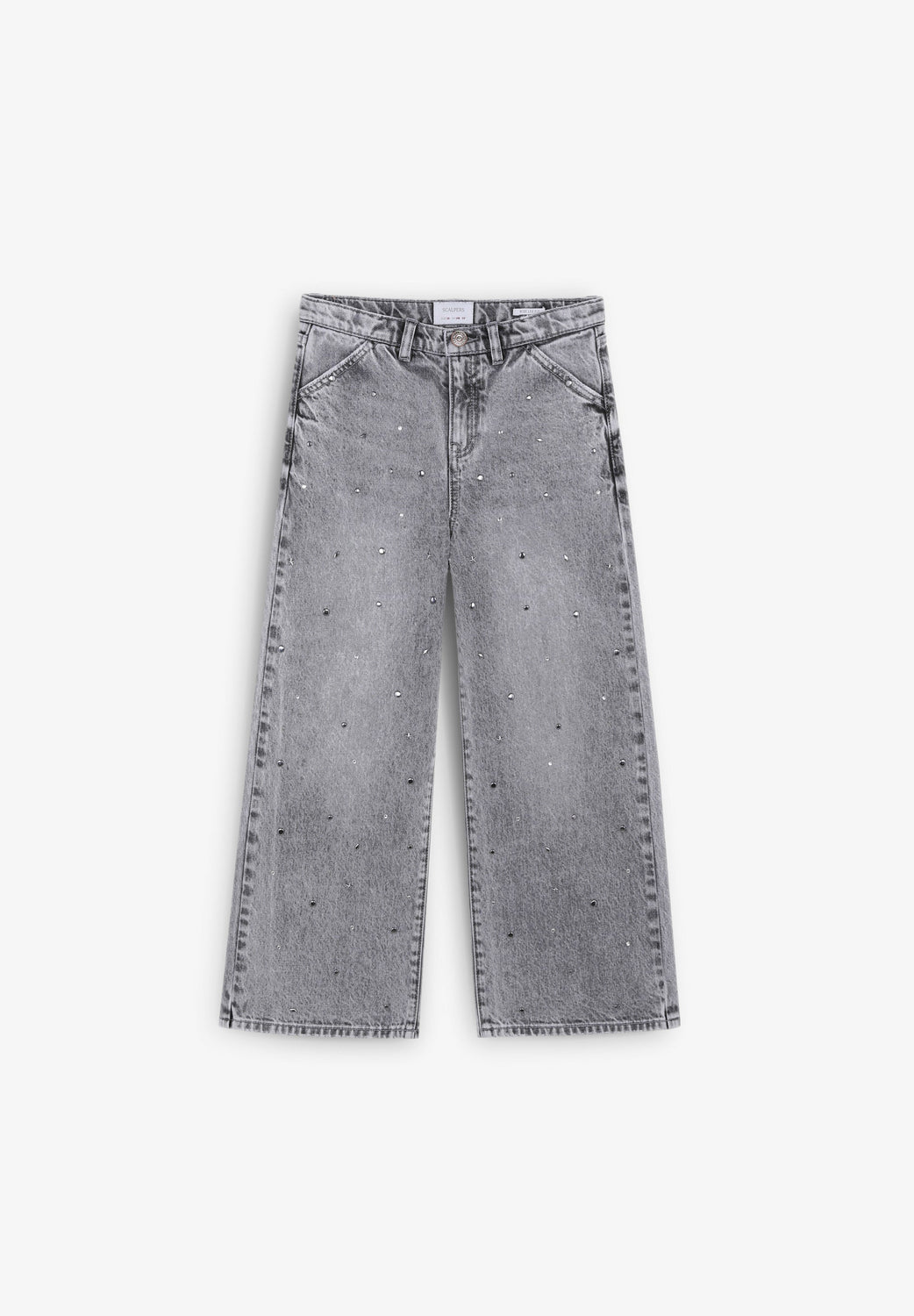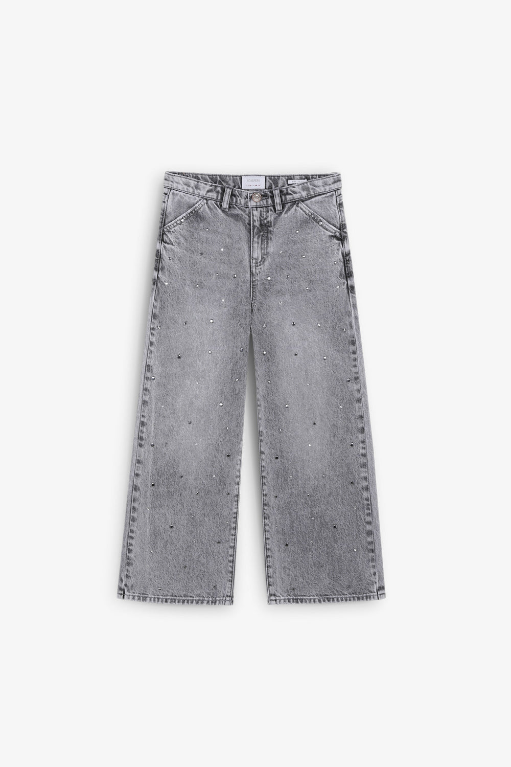 Jeans with all-over studs made of 100% BCI cotton. Culotte fit, zip and button fastening and belt loops at the waist. Side and back pockets.