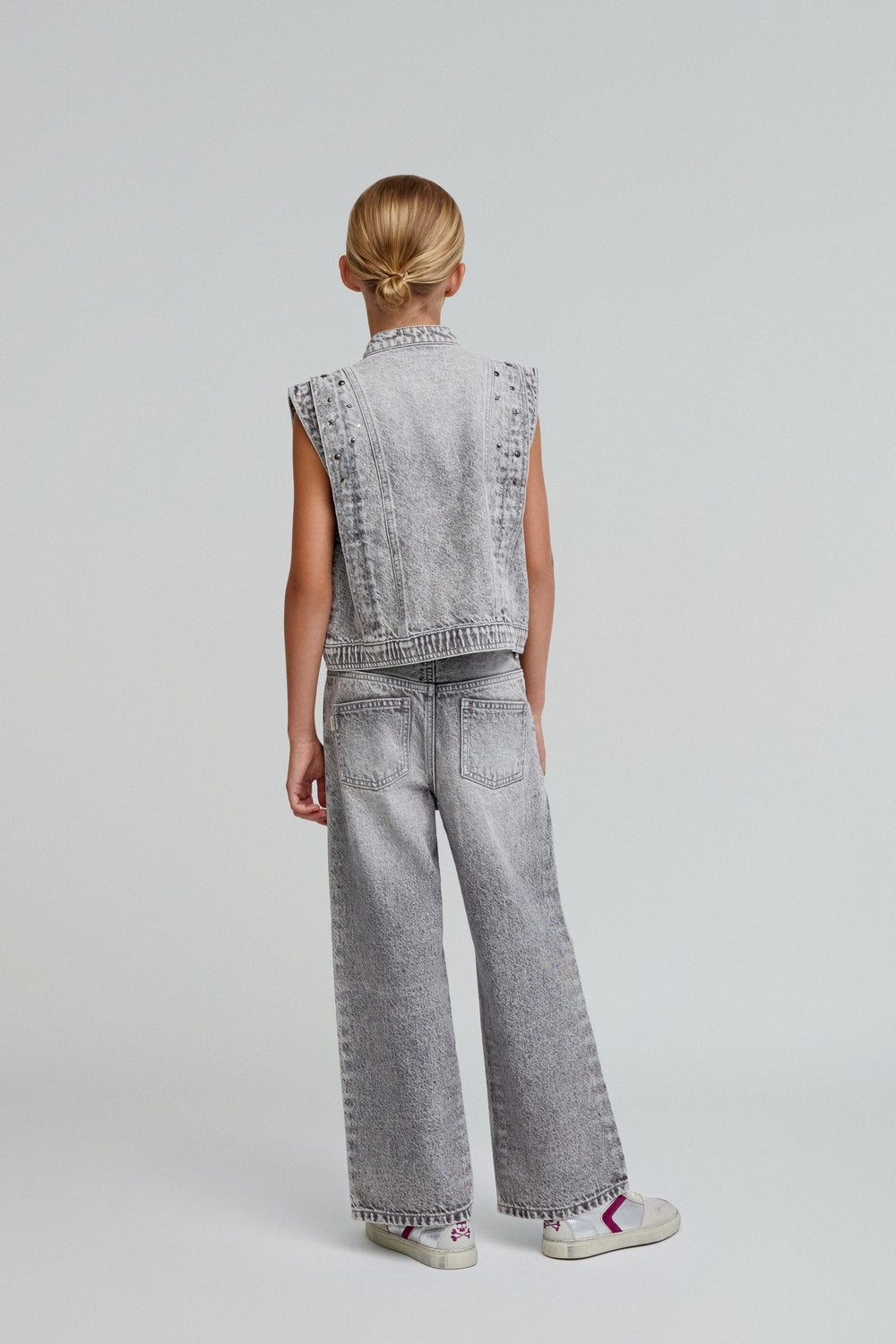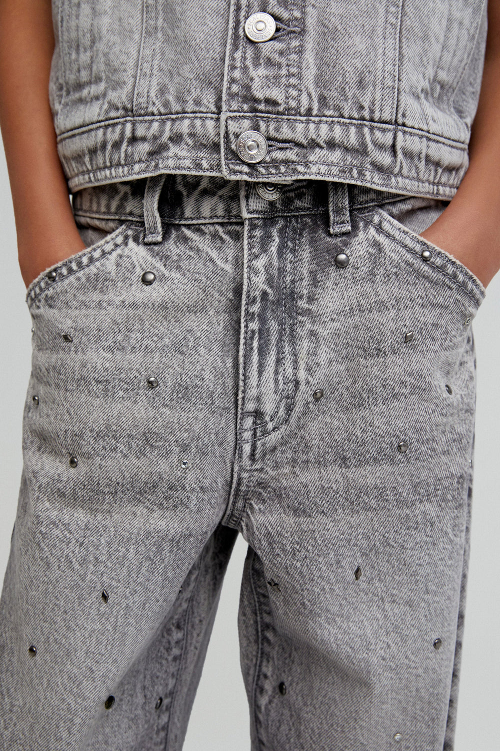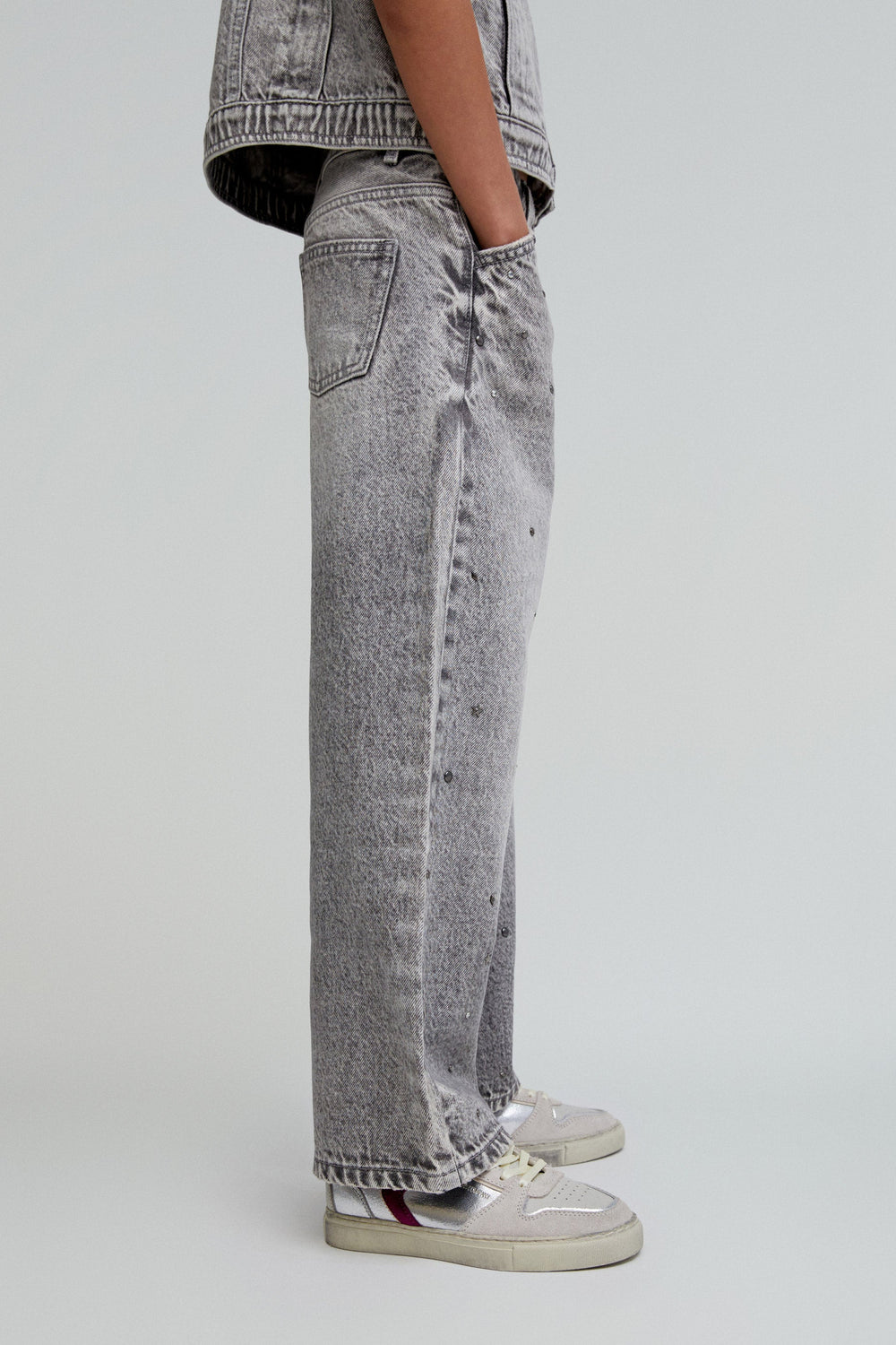 Jeans with all-over studs made of 100% BCI cotton. Culotte fit, zip and button fastening and belt loops at the waist. Side and back pockets.