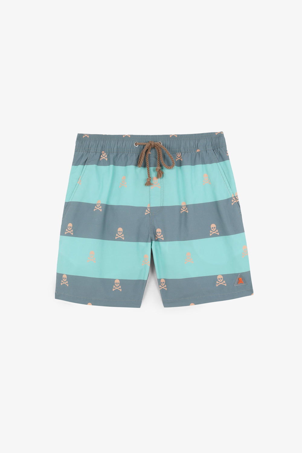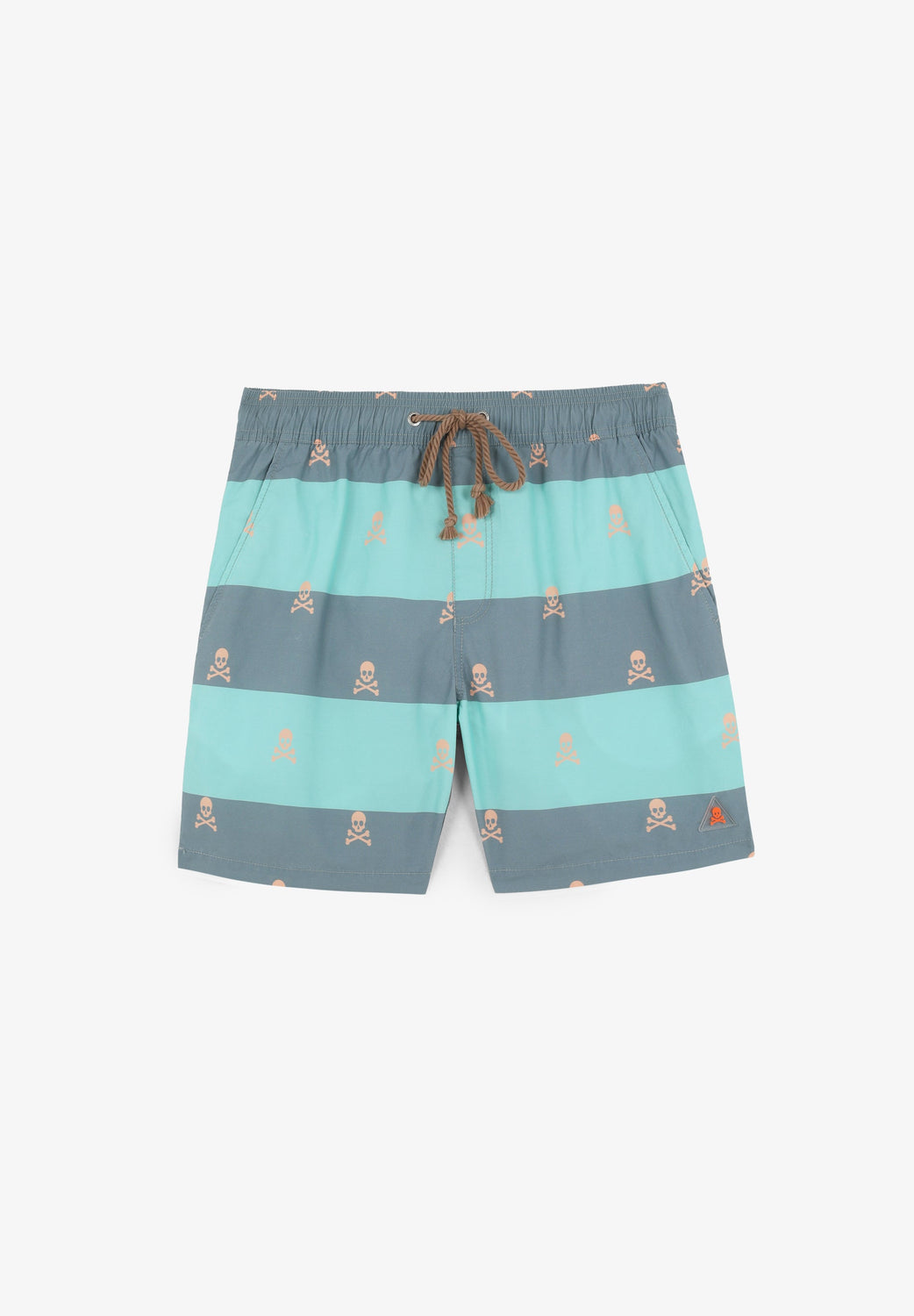 SWIMMING TRUNKS WITH STRIPES AND SKULLS
