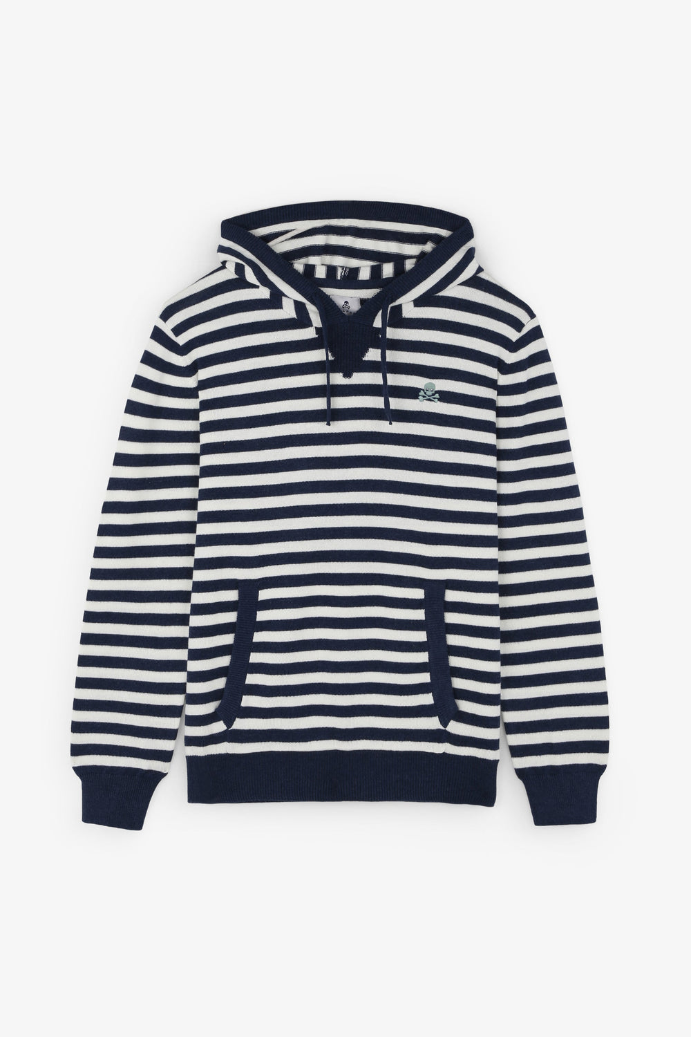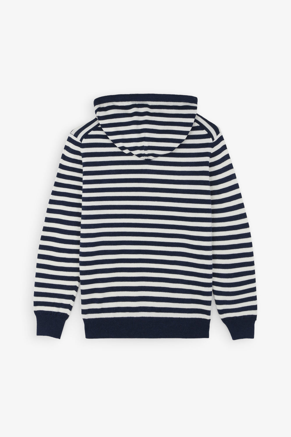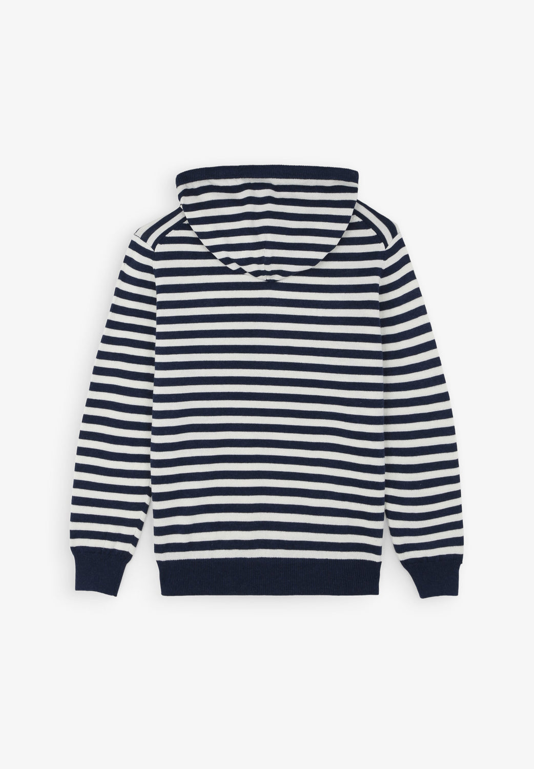 Striped sweatshirt with hood and contrast details.