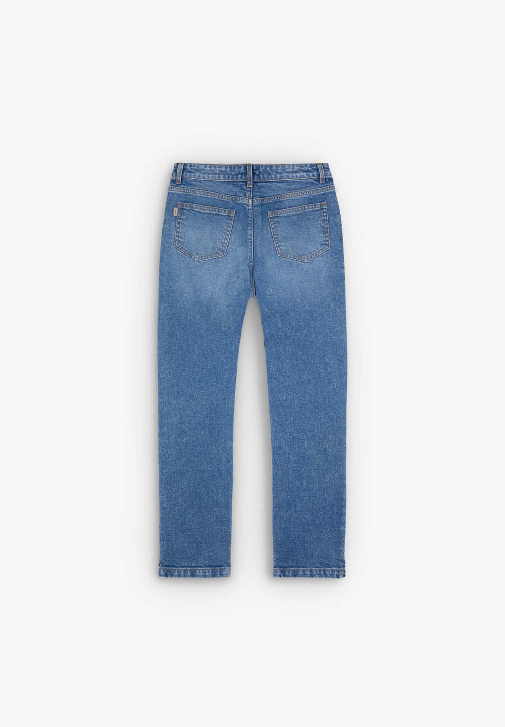 Straight jeans made of slightly stretchy cotton. Regular fit, zip and button fastening. Belt loops and side and back pockets.